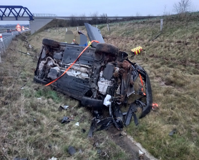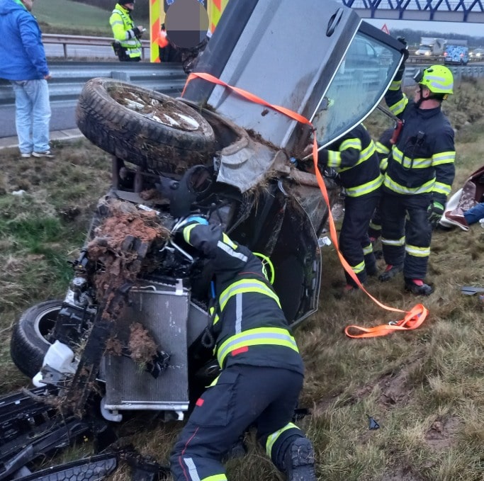 IZS v akci: Auto sjelo z dálnice a převrátilo se
