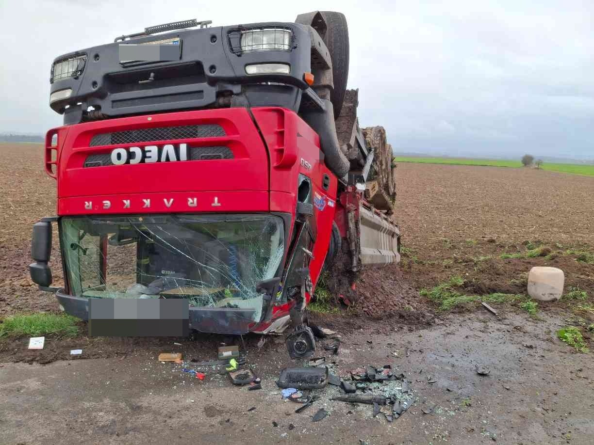 Mezitím jednotka z Nového Bydžova společně s dobrovolnými hasiči z Nechanic pracovala u původně hlášené nehody. Nákladní vozidlo převážející kámen bylo převrácené v poli a částečně zasahovalo do komunikace. Hasiči pomohli zraněnému řidiči, který byl předán do péče záchranářů. Vozidlo zajistili proti vzniku požáru, odpojili baterii a zachytili unikající provozní kapaliny, aby neohrožovaly okolí.