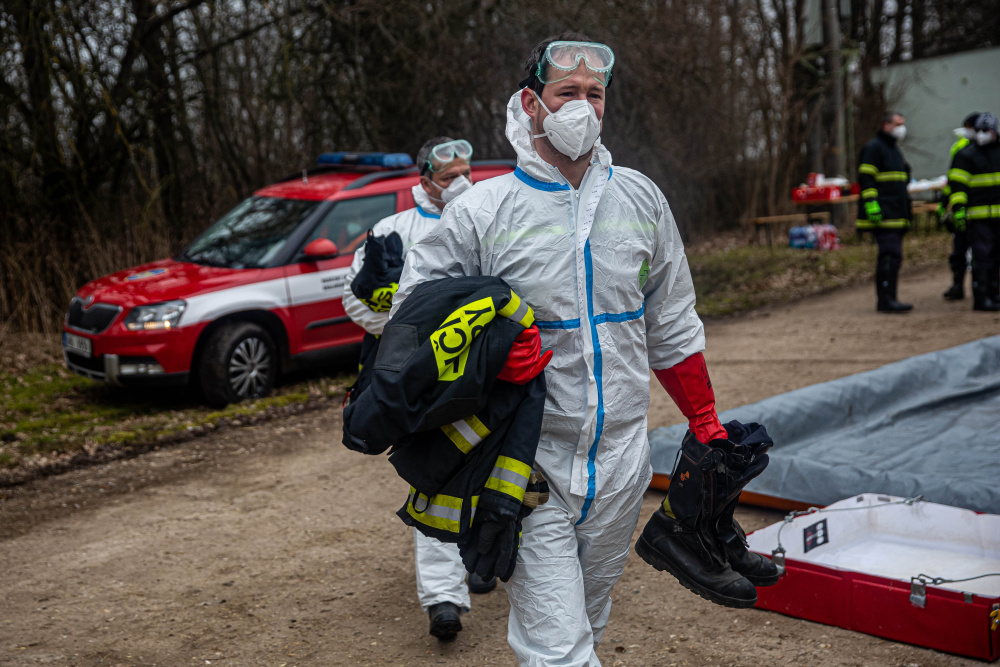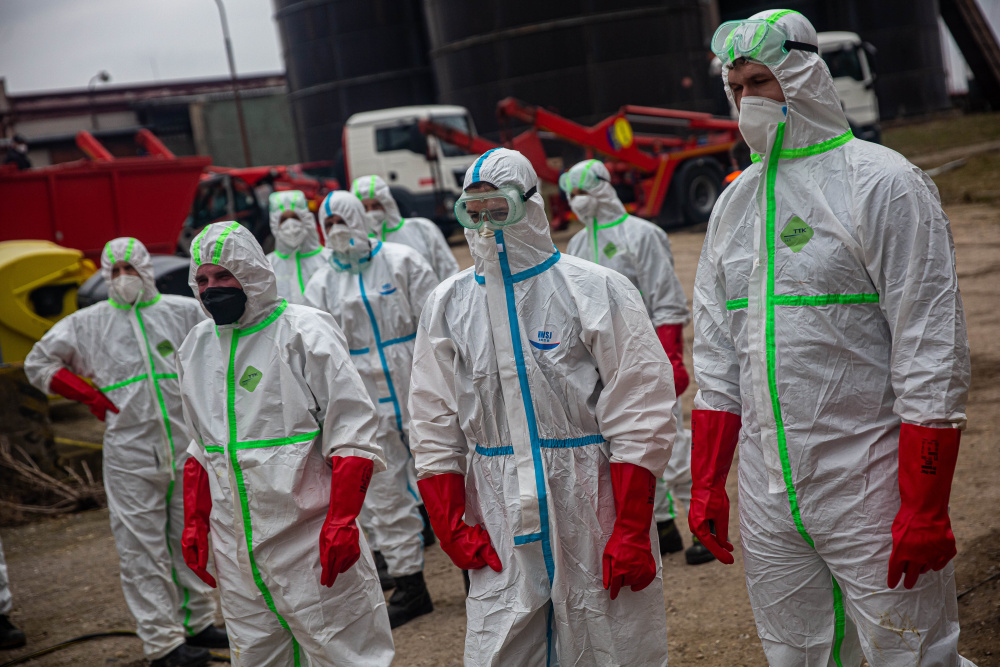 1. 22. 3. 2021 V dobřenickém chovu nakaženém ptačí chřipkou bylo nasazeno první den 70 hasičů