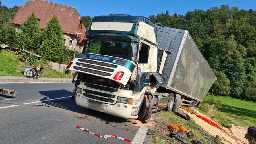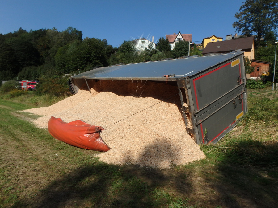 U Velkých Petrovic havaroval na silnici č. 303 kamion převážející štěpku. Vozidlo se převrátilo mimo silnici do příkopu, kam se zároveň vysypal i náklad. Nádrž automobilu zůstala nepoškozena. Na místo události vyjela profesionální jednotka z Náchoda a JSDH Police nad Metují. Hasiči zajistili místo události a kontrolovali vozidlo na případný únik provozních kapalin. Řidič byl předán do péče ZZS. Vyproštění havarovaného náklaďáku provedla odborná firma, hasiči se poté postarali o úklid vozovky.