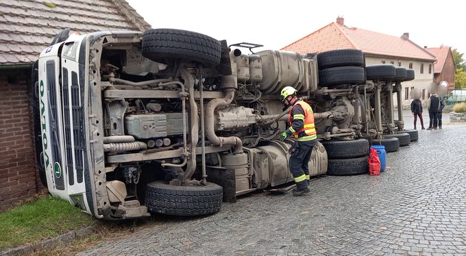 K dopravní nehodě kamionu došlo krátce po poledni na silnici v obci Libčany. Podle hasičů se vozidlo převrátilo mimo komunikaci a z nádrží začaly unikat provozní kapaliny. Na místo vyrazily jednotky z Hradce Králové i místní dobrovolní hasiči. Ti okamžitě zajistili okolí, aby nedošlo ke znečištění půdy a kanalizace.