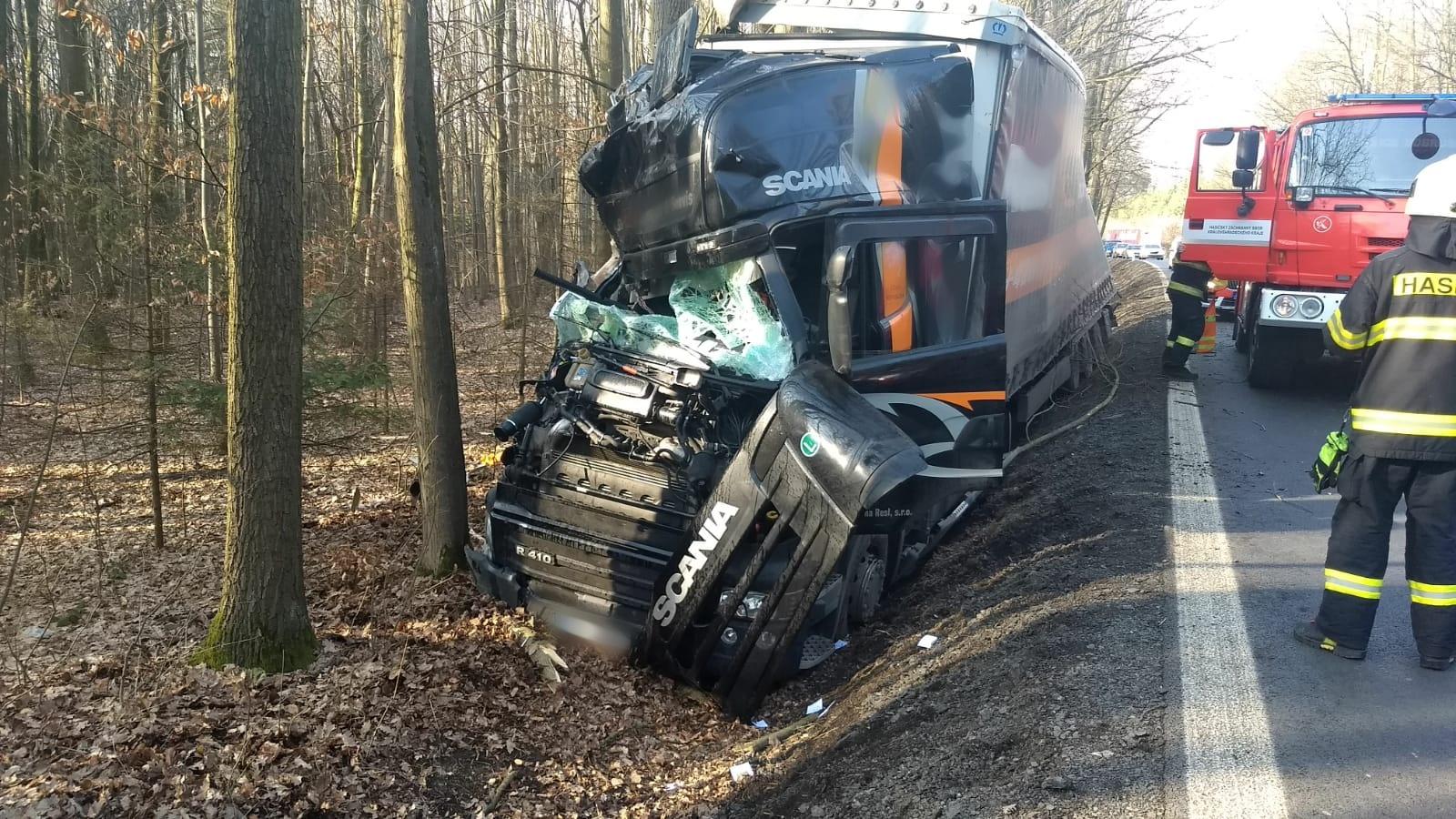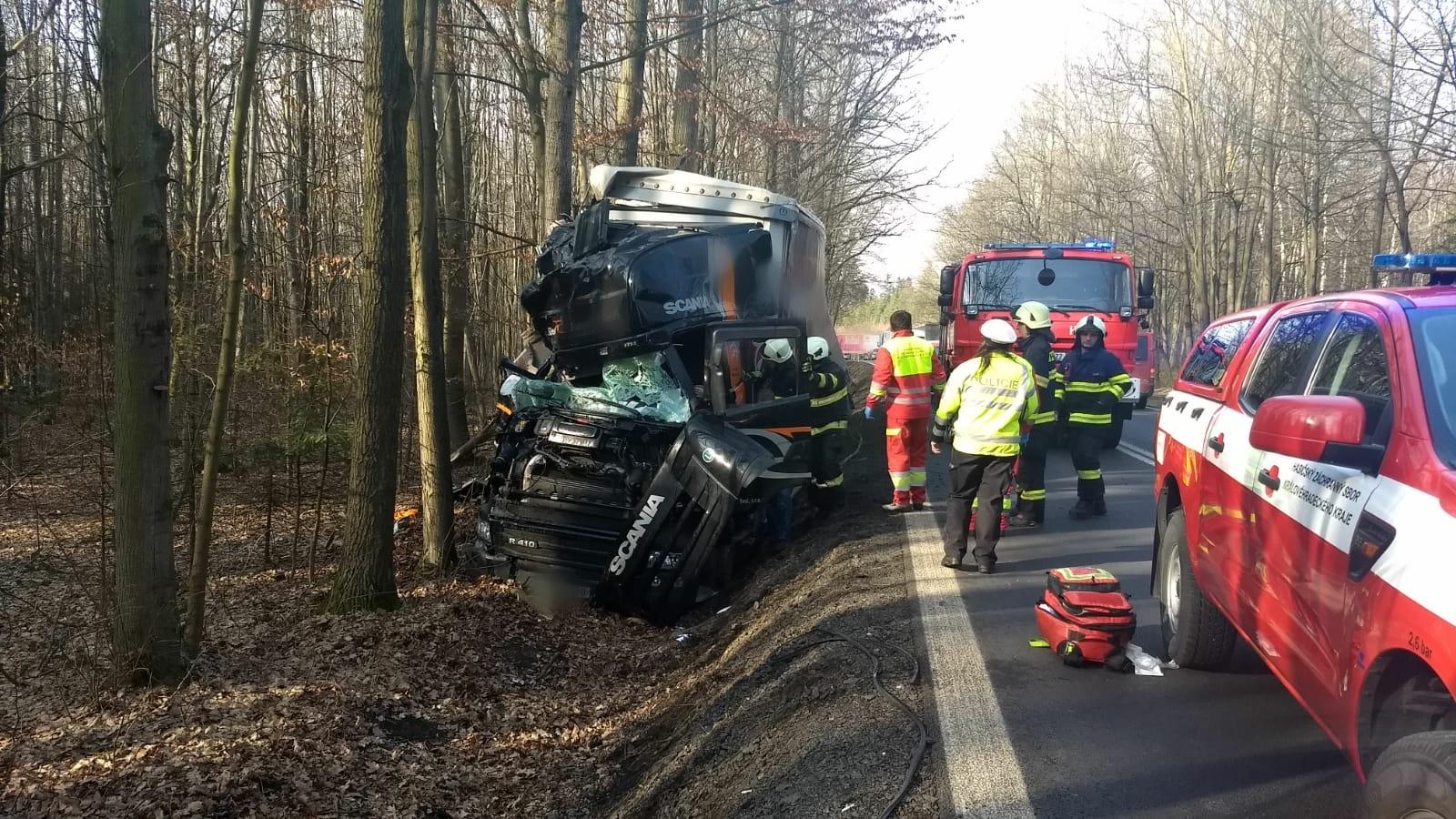 Řidič vozidla byl zraněn, ale ze zdemolované kabiny se dostal sám bez pomoci hasičů. Jednotka mu poté poskytla první předlékařskou pomoc a předala jej následně do péče záchranářů.