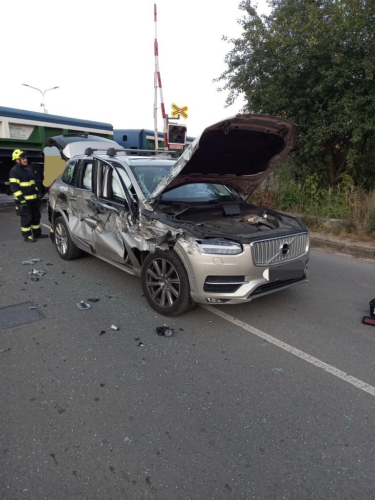 Kolize vlaku s autem na železničním přejezdu: Hasiči zajistili místo