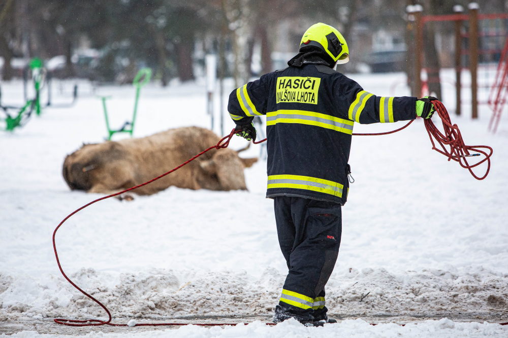 Krátce po poledni přijalo krajské operační a informační středisko hasičů hlášení o volně pohybujícím se skotu v části Malšovice, nedaleko Všesportovního stadionu. Z přepravního vozidla mělo utéct pět krav, které mohly být pro okolí nebezpečné. Na místo vyjela profesionální jednotka z centrální stanice a povolány byly také posilové jednotky dobrovolných hasičů z Malšovy Lhoty, Svinar a Třebše. Na místě spolupracovali hasiči s Policií České republiky a dostavili se také zástupci veterinární správy.