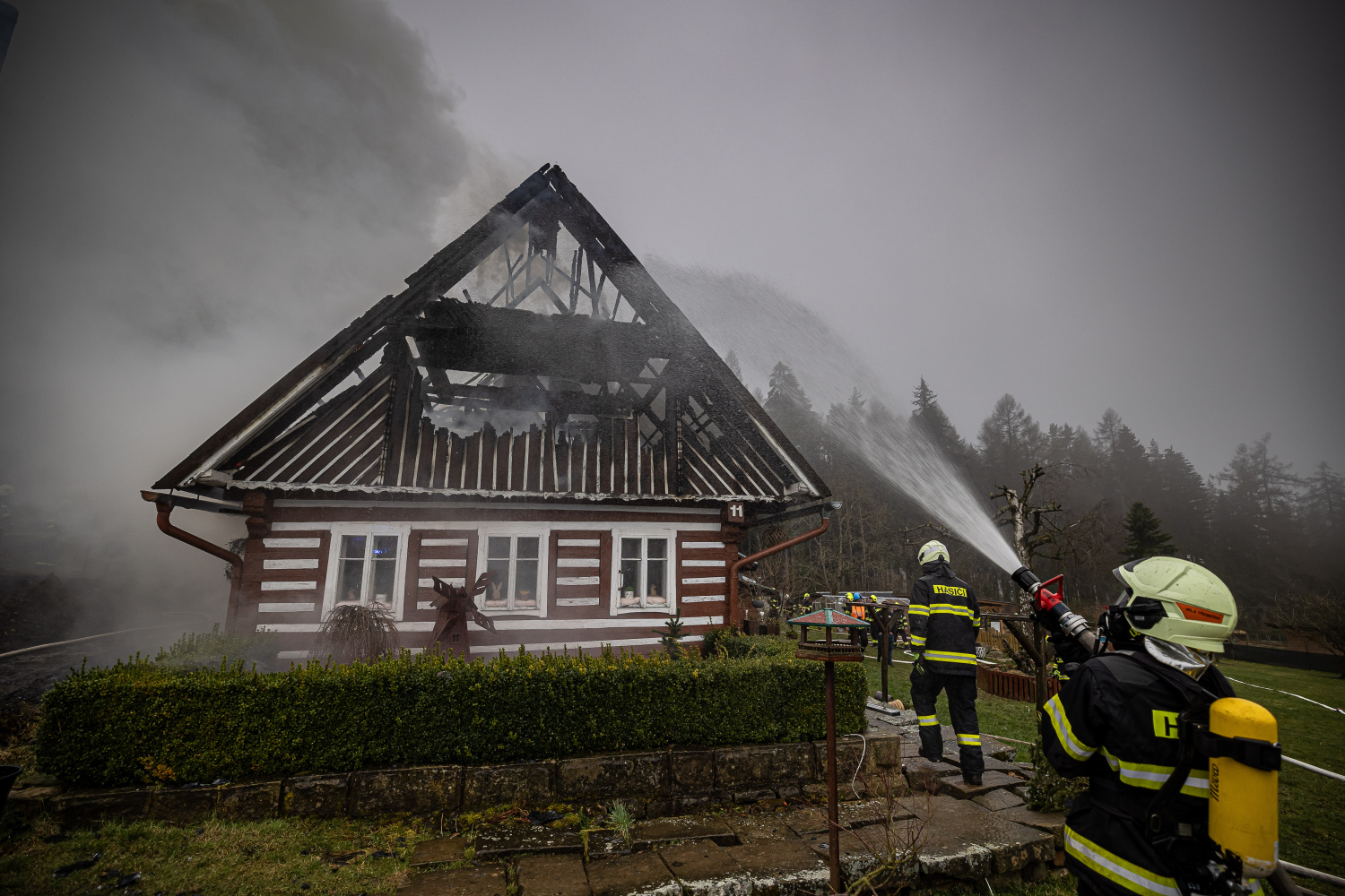Do hůře přístupného terénu v části Nové Záboří mířilo k ohlášenému požáru chalupy ve čtvrtek v podvečer osm jednotek požární ochrany z druhého stupně požárního poplachu. Už při příjezdu hasičů byl celý objekt v plamenech. Jednotky natáhly několik vodních proudů, vodu pro hašení braly i z rybníka na zahradě. Plameny měly tendenci šířit se k blízkému elektrickému vedení a dál směrem do lesa, hasiči je ale kolem 18:30 hod. lokalizovali a nic dalšího v okolí ohroženo nebylo. Postupně byl snižován počet zasahujících jednotek a ty, které na místě zůstaly, prováděly do nočních hodin likvidační práce. Po 22. hodině se zredukovaly síly a prostředky na minimum, na místě zůstala na dohlídku do rána místní dobrovolná jednotka. Při události nebyl nikdo zraněn.