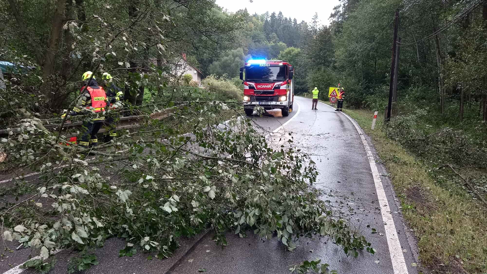 Silný vítr v Královéhradeckém kraji zaměstnává hasiče už druhý den. Od včerejšího rána do dnešního poledne zasahovali u více než 300 událostí. Nejčastěji šlo o popadané stromy blokující silnice a nebezpečně uvolněné střechy. Situace se postupně stabilizuje, přesto jednotky stále vyjíždějí k novým případům.