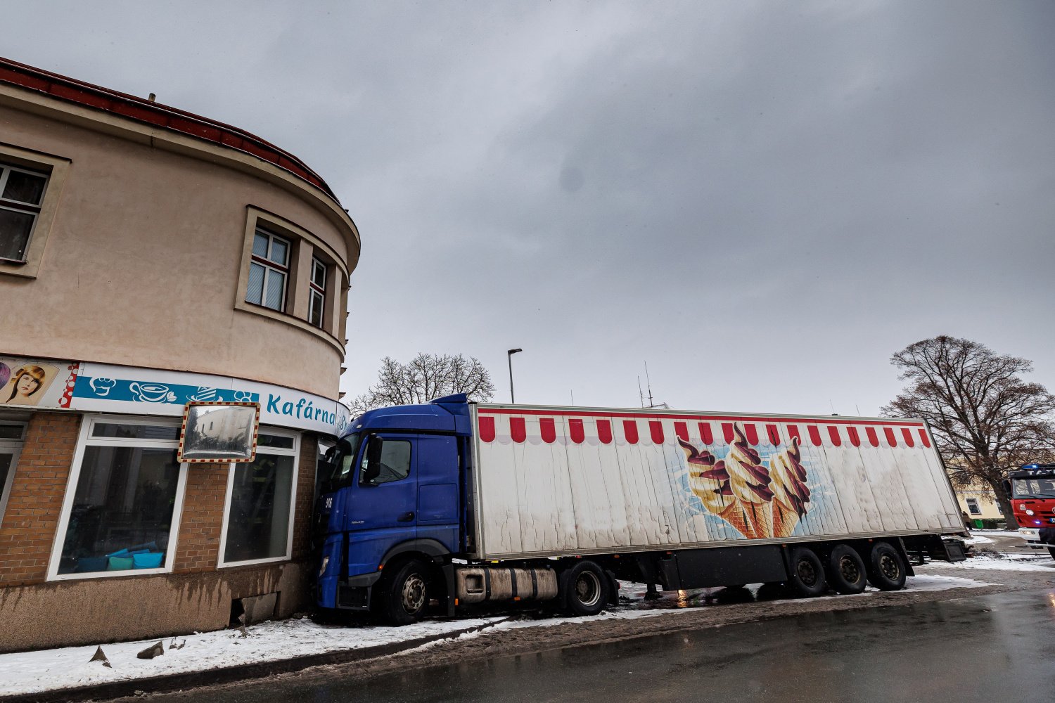 Náraz kamionu do objektu s kavárnou