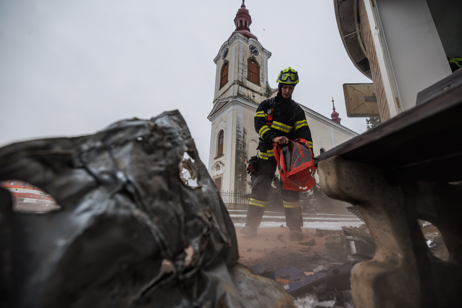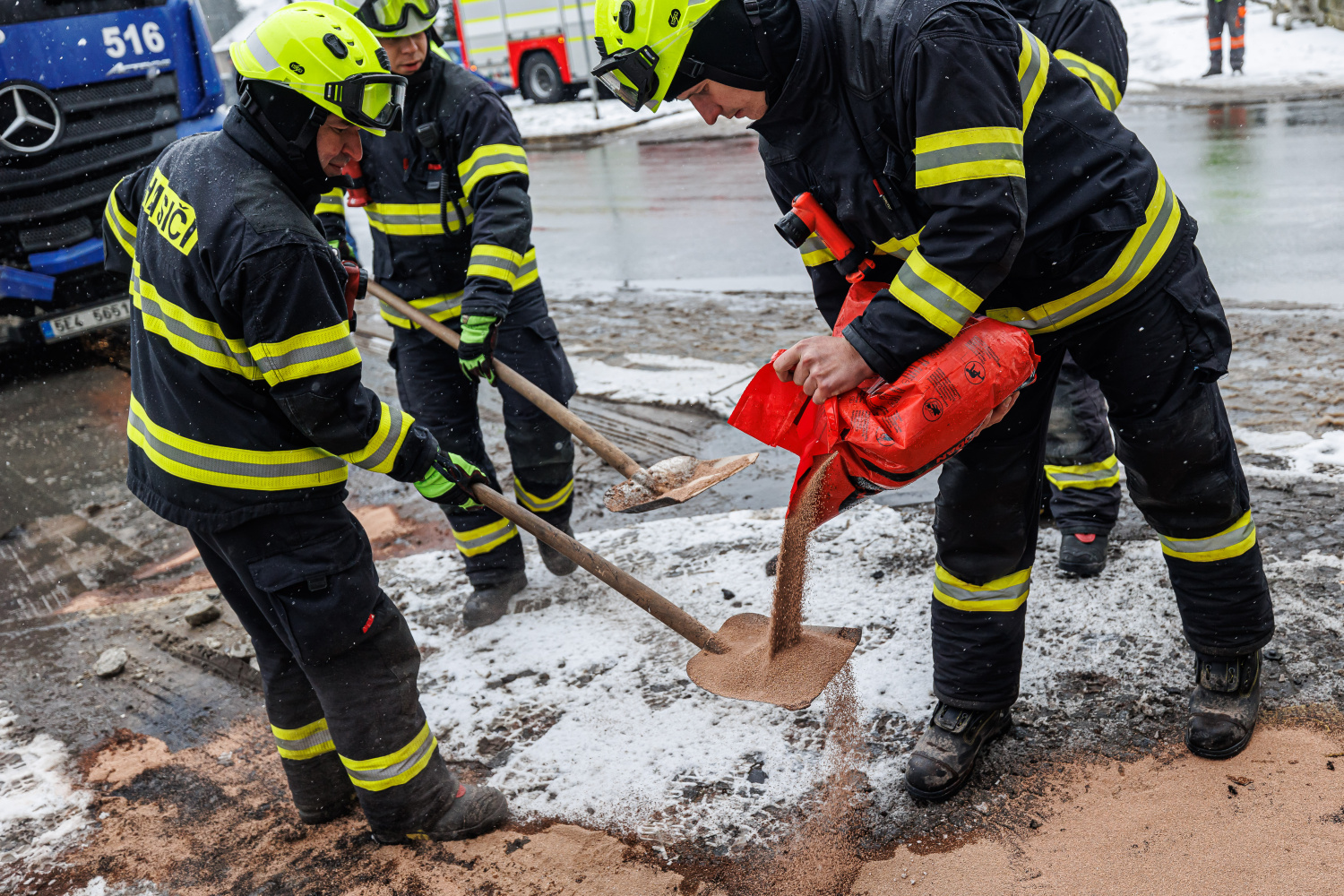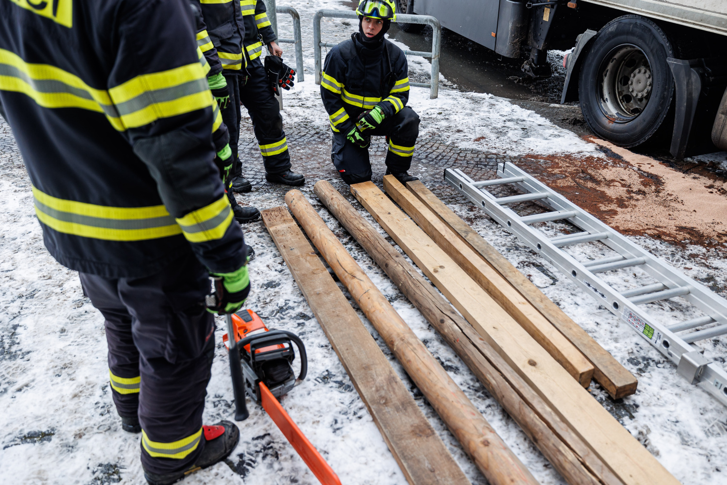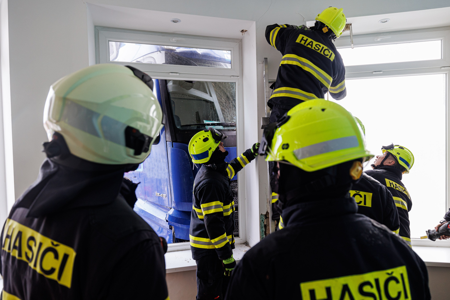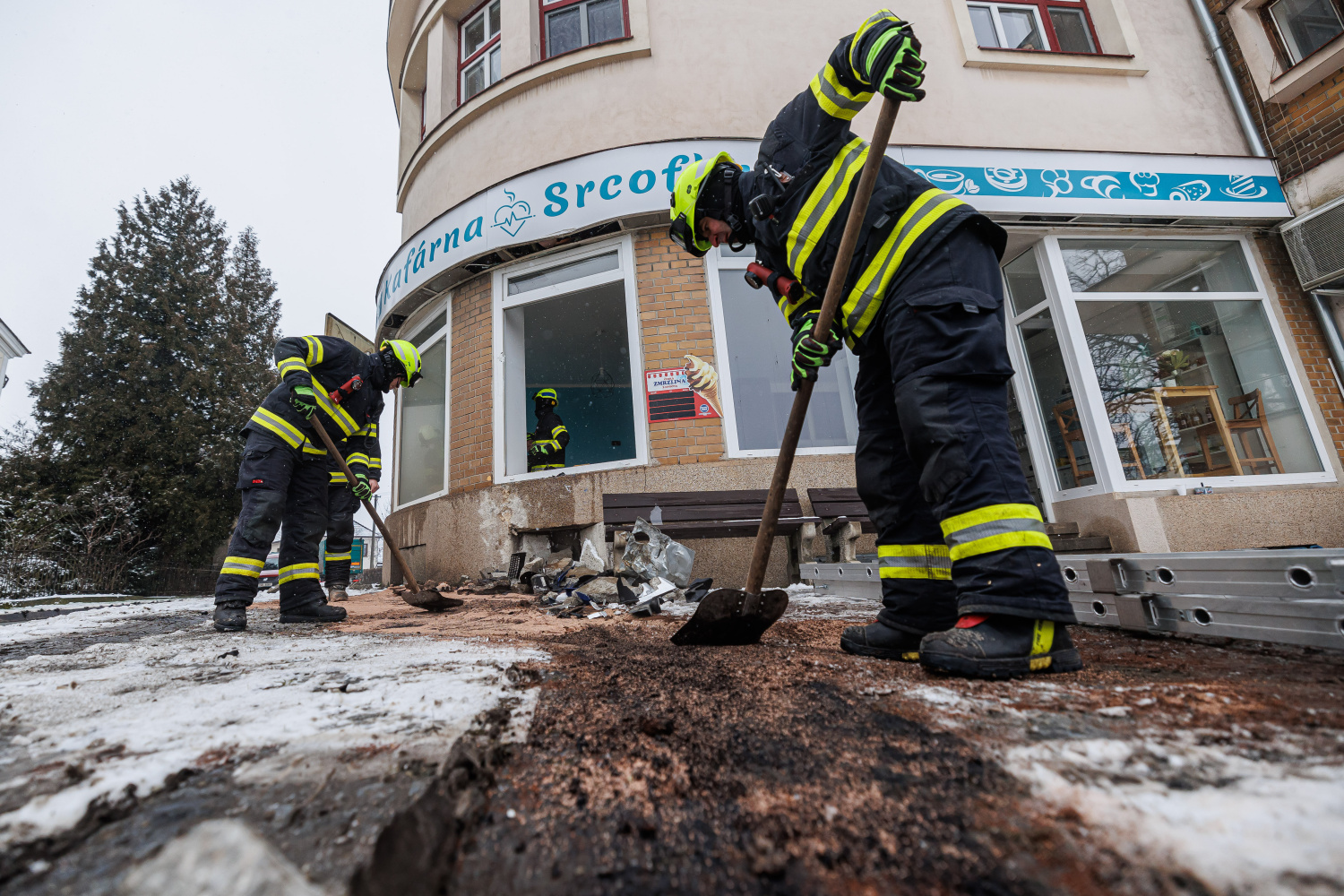 Kamion narazil do pilíře mezi okna kavárny, proto povolal velitel zásahu na místo události statika, aby posoudil stav budovy. Doporučením pak byla základní stabilizace pilíře, kterou zabezpečily jednotky HZS. Dále také likvidovaly únik motorového oleje, vyteklou kapalinu na zpevněné komunikaci zasypaly sorbentem.