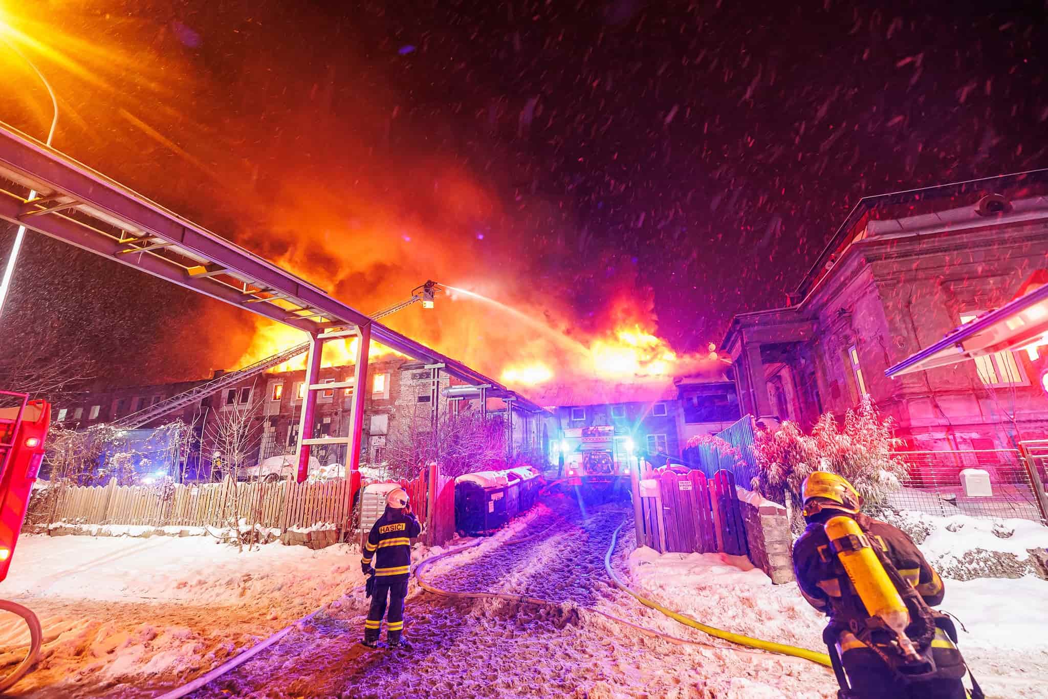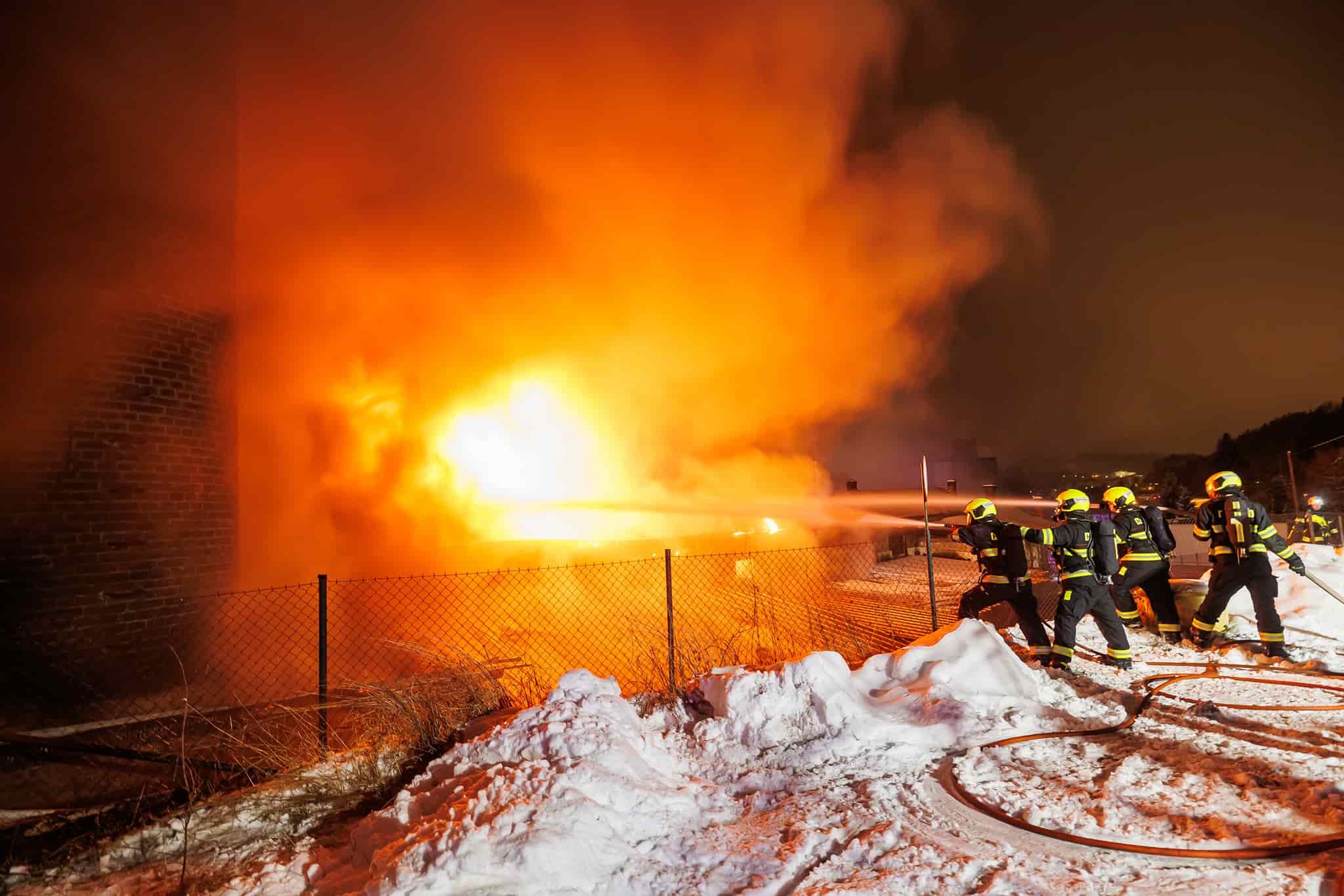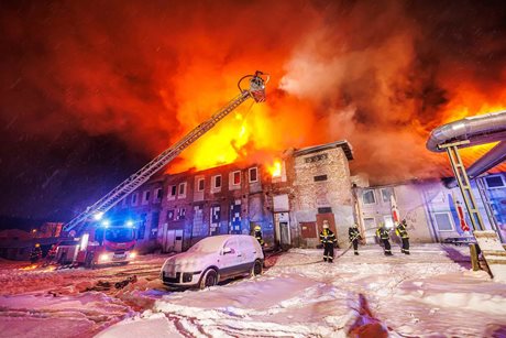 Krátce po půlnoci zasahovali hasiči u rozsáhlého požáru objektu. Oheň byl silně rozšířen už při příjezdu jednotek a zásah probíhal výhradně zvenčí. Kvůli náročným podmínkám byl vyhlášen třetí stupeň požárního poplachu.