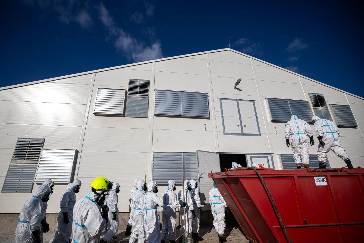 Hasiči spolupracovali s veterináři a zaměstnanci podniku. Jejich úkolem bylo vynášet drůbež z hal, zajistit desinfekci prostor a dekontaminovat techniku i zasahující osoby. Za první čtyři dny bylo odvezeno přibližně 300 tun drůbeže a 11 tun vajec, další přeprava byla dokončena během pátečního dne. Během zásahu bylo zraněno sedm hasičů, žádné zranění nebylo vážné.
