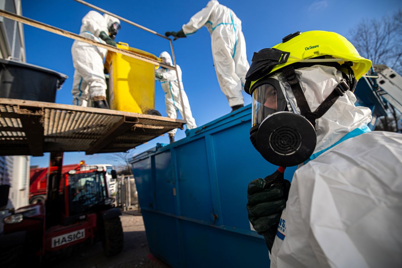 Na místě se během pěti dní vystřídalo celkem 630 hasičů, z toho část dobrovolníků. Při práci se pohybovali ve vymezené nebezpečné zóně, chráněni jednorázovými ochrannými oděvy, rukavicemi, holínkami a obličejovými maskami. Jednotlivé skupiny zasahovaly přibližně 1,5 hodiny a celkem hasiči odpracovali přes sedm tisíc hodin.