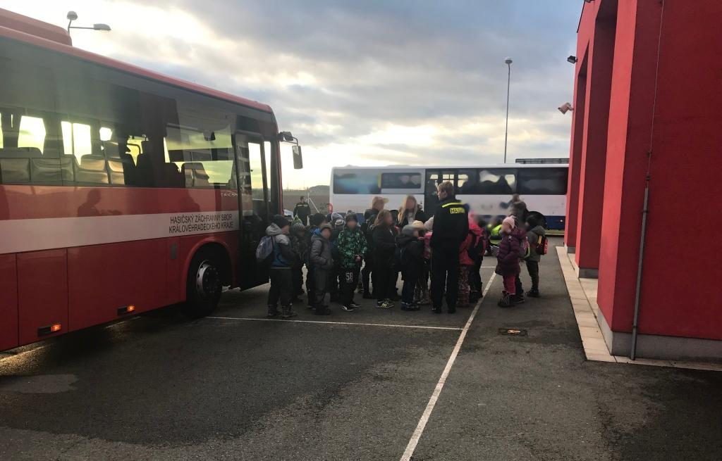 Velitel zásahu požádal o vyslání hasičského evakuačního autobusu z centrální hradecké stanice. Autobus vyrazil na místo těsně po 14. hodině. Asi čtyřicítku dětí spolu s doprovodem dopravil před 15. hodinou na stanici Hradec Králové – Pražská. Tam se o děti hasiči postarali do doby, než pro ně přijel náhradní autobus vyslaný dopravcem. Zájemce jsme vzali i na prohlídku stanice .