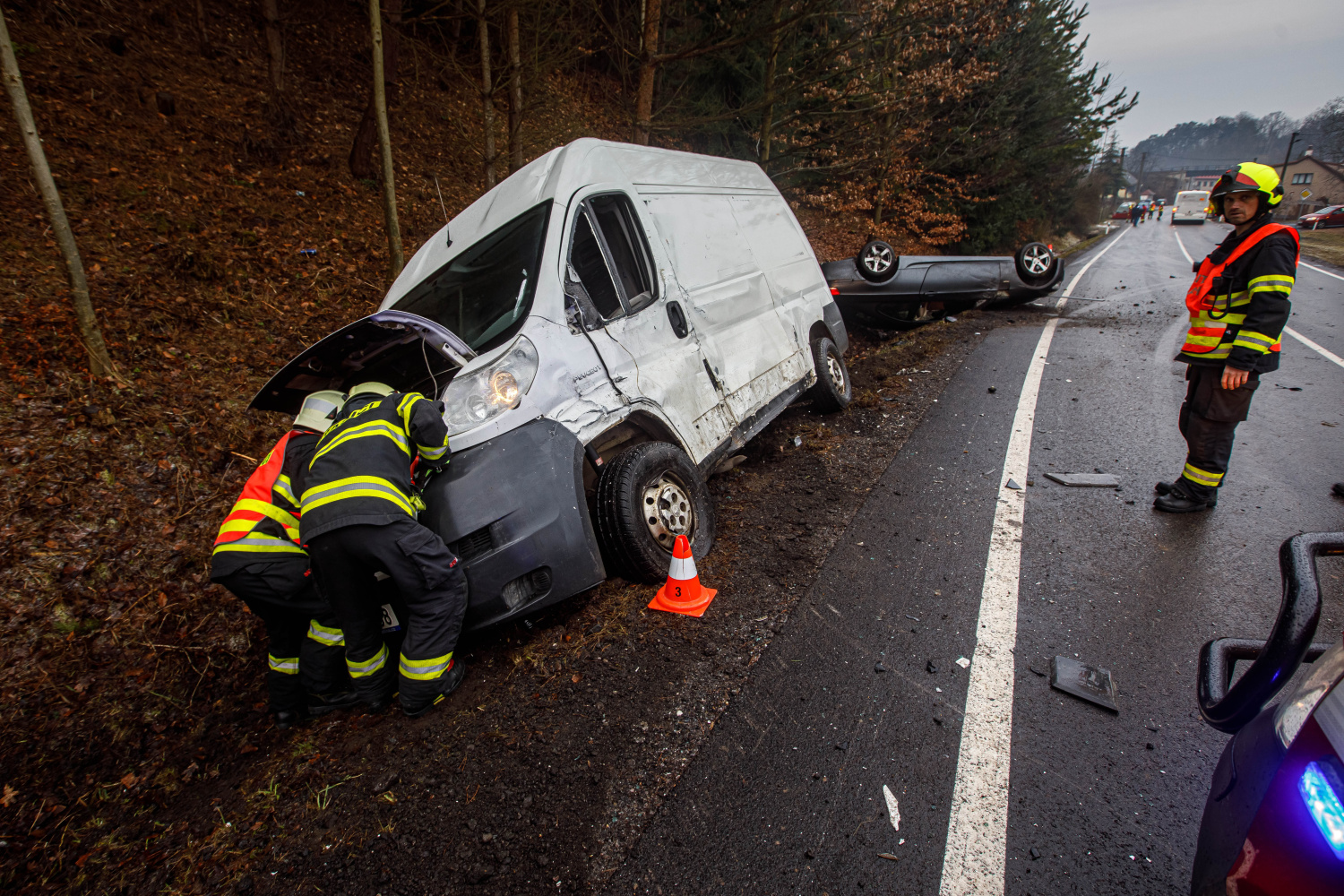 V ranních hodinách zasahovali profesionální hasiči z Náchoda ve Vysokově, došlo k dopravní nehodě osobního vozu, dodávky a linkového autobusu. Komunikace byla v místě zledovatělá, cestou operačního střediska byli vyrozuměni silničáři. Osobní vozidlo i dodávka skončily v příkopu, osobák byl navíc převrácený na střechu. Osoba z něj byla už při příjezdu jednotky venku, v péči ji měla posádka ZZS. V autobuse cestovali 4 lidé, byli v pořádku bez zranění, počkali na dopravcem zajištěnou náhradní dopravu. Hasiči zabezpečili místo události, zajistili havarovaná vozidla, a po naložení osobního auta na odtah se postarali o úklid vozovky.