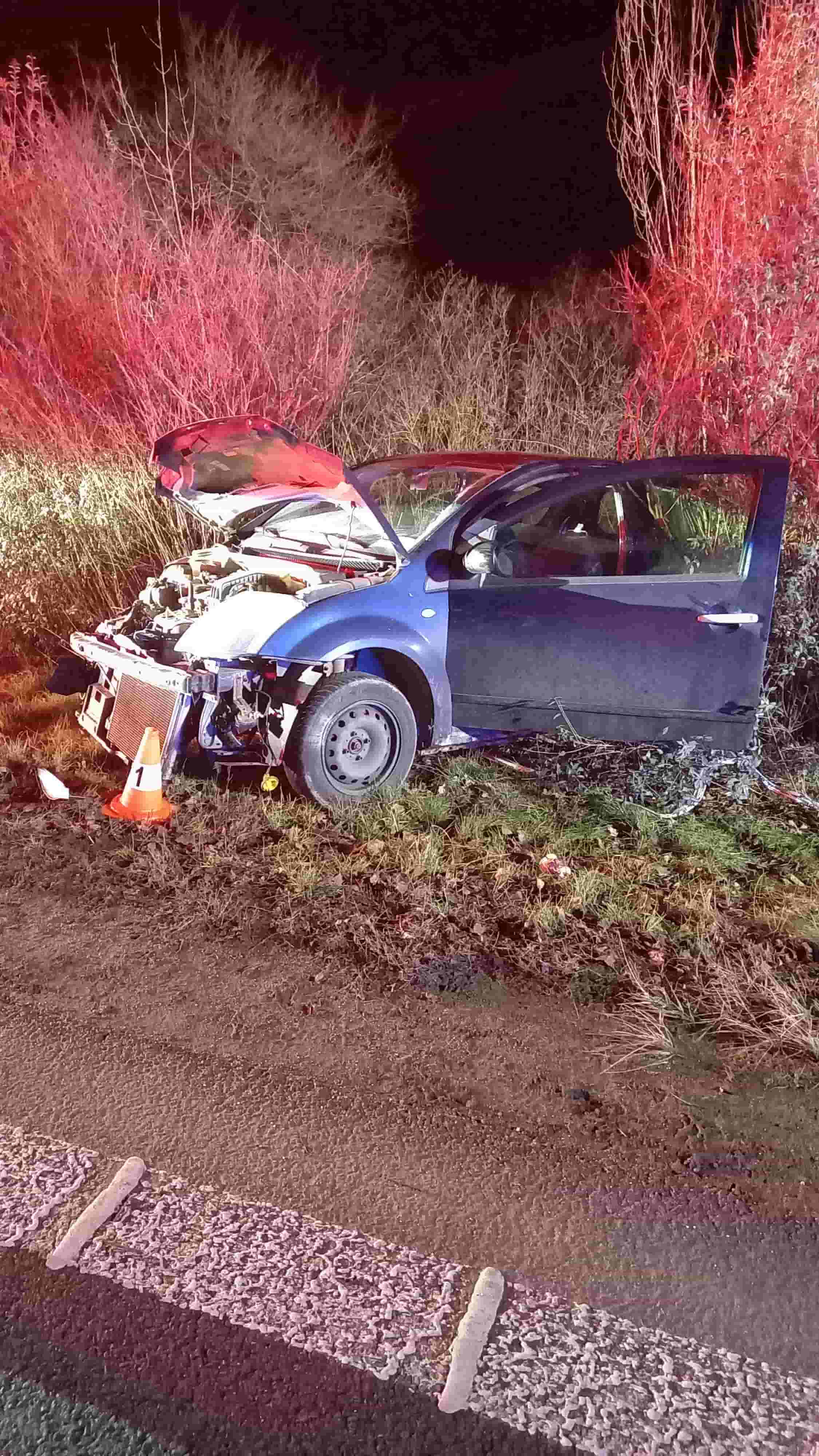 Noční jízda skončila mimo silnici