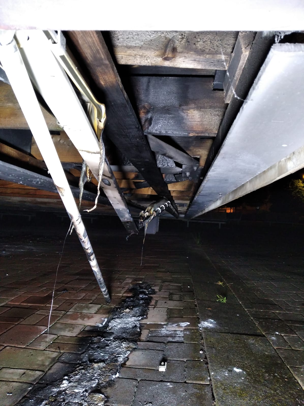 Hasiči provedli na místě kontrolu termokamerou a pomocí vysokotlakého proudu vody ochladili místo předchozího hoření pod podlahou pódia.