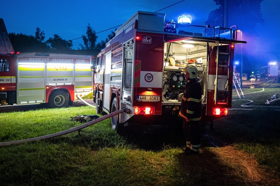 Pěčín – Požár, nízké budovy – 17.6. 20:45