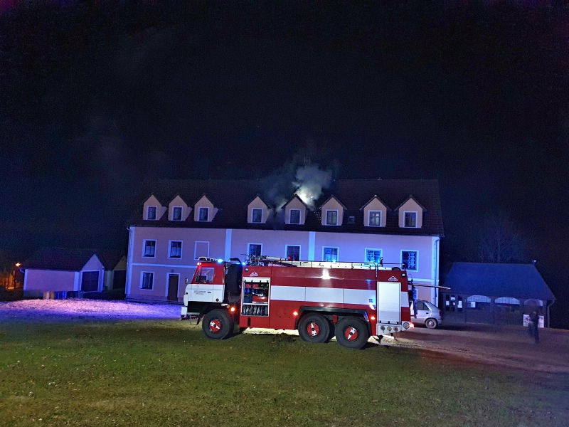 Kvůli ohlášenému požáru části střechy restaurace bylo v úterý večer zalarmováno celkem devět jednotek hasičů. Požár zasáhl podkroví a část střechy. Lokalizaci ohlásil velitel zásahu před 21:30 hod., následně museli hasiči rozebrat část konstrukce, aby odhalili a dohasili skrytá ohniska. Požár byl zlikvidován těsně po půlnoci. Jednotky poté provedly provizorní zastřešení zasažené části. Příčina vzniku požáru je předmětem vyšetřování, vyšetřovatel hasičů se na požářiště vrátí během dnešního dne. Škoda byla předběžně vyčíslena na 350 tisíc korun, podařilo se uchránit hodnoty představující odhadem 2,5 milionu korun.