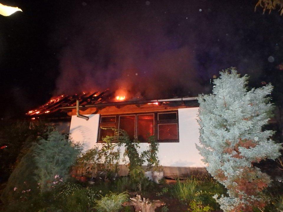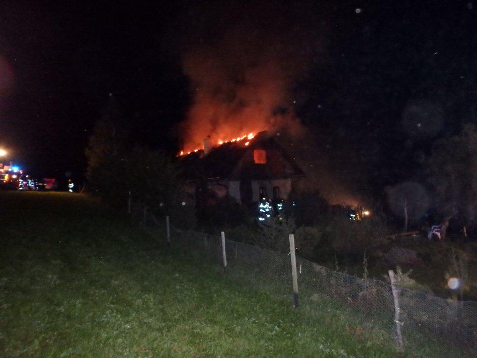 Při příjezdu na místo bylo zjištěno, že požárem je již zcela zasažena střešní konstrukce dvoupatrové chalupy a jedná se tedy o požár většího rozsahu. Dva obyvatelé domu se nezranění nacházeli mimo objekt. Pro likvidaci požáru bylo nasazeno několik vodních proudů, hasiči zasahovali v dýchacích přístrojích.