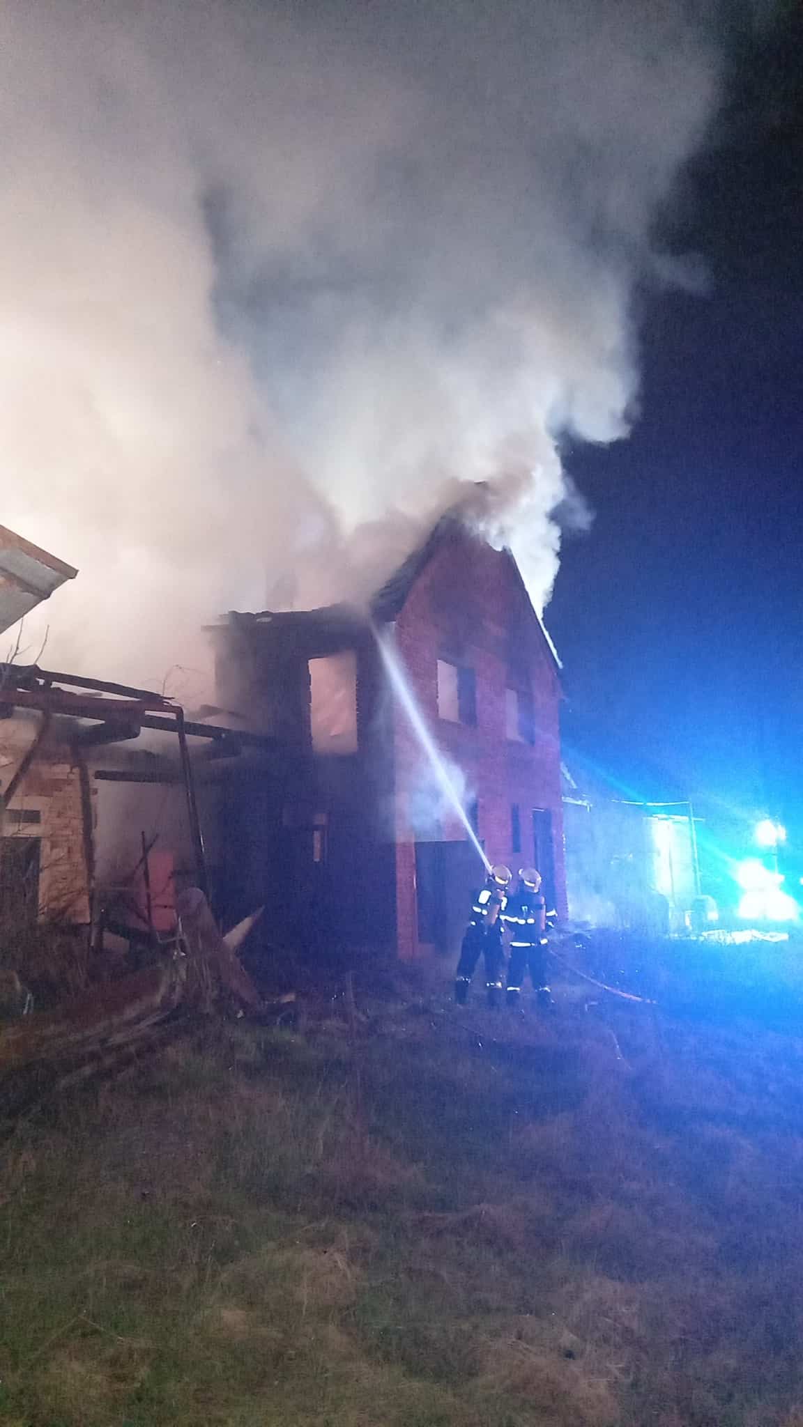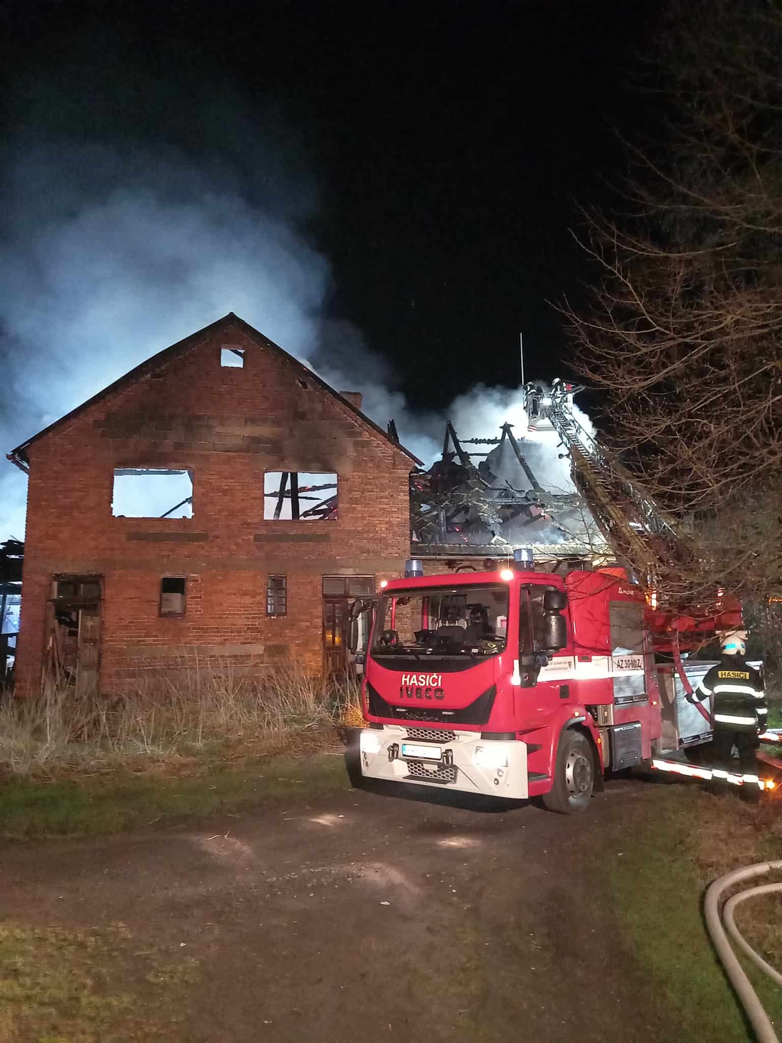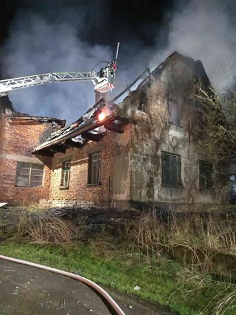 Požár neobývaného rodinného domu zaměstnal hasiče v nočních hodinách. Plameny rychle zasáhly střešní konstrukci a hrozilo její zřícení. Zásah probíhal zvenčí i za využití výškové techniky. Událost se obešla bez zranění.