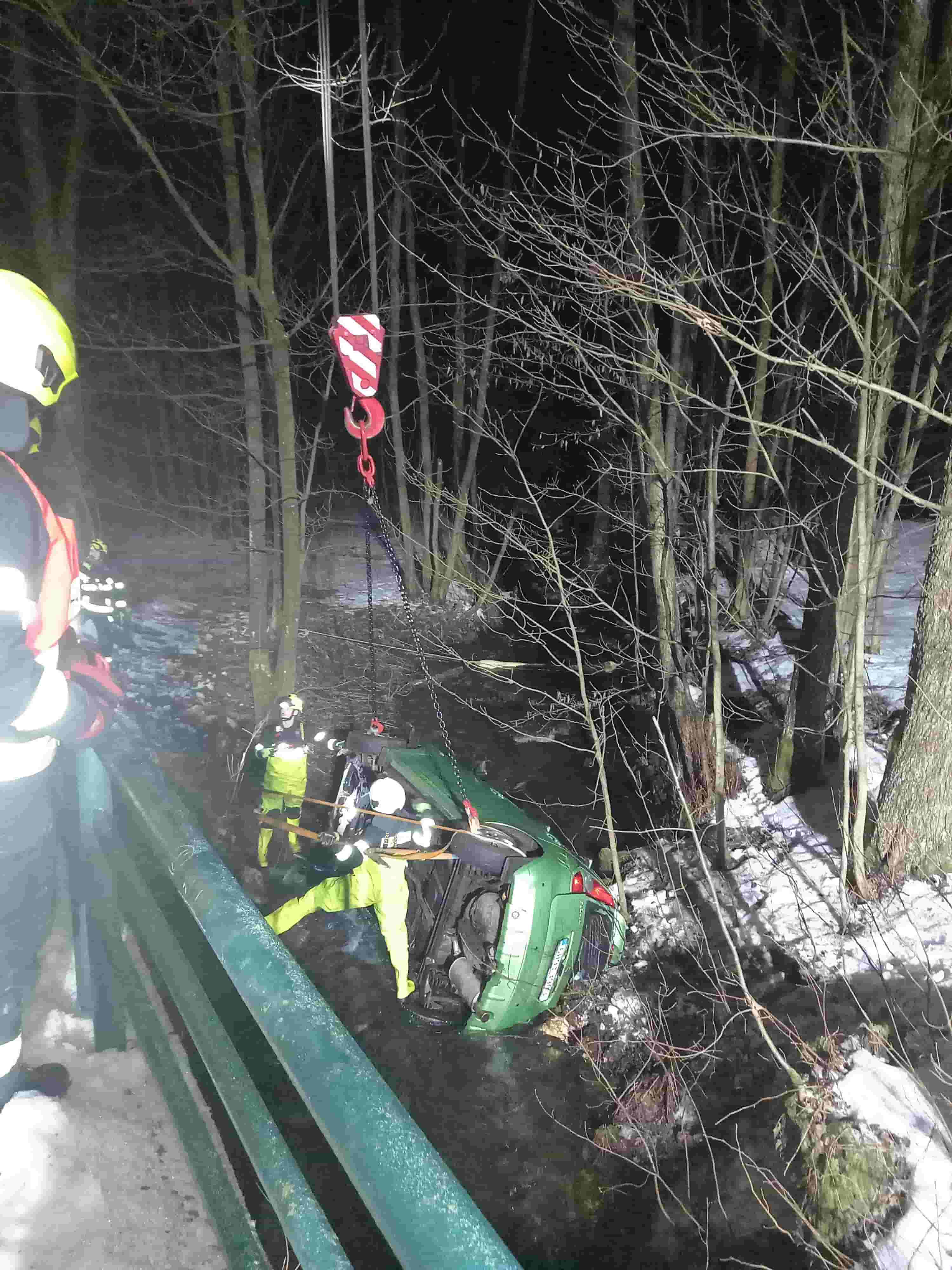 Vozidlo se nacházelo přímo v korytě potoka, což komplikovalo jeho vyproštění. Hasiči proto museli využít jeřáb, pomocí kterého automobil z vody vytáhli zpět na komunikaci. Během zásahu dbali na to, aby nedošlo k úniku provozních kapalin do vodního toku.