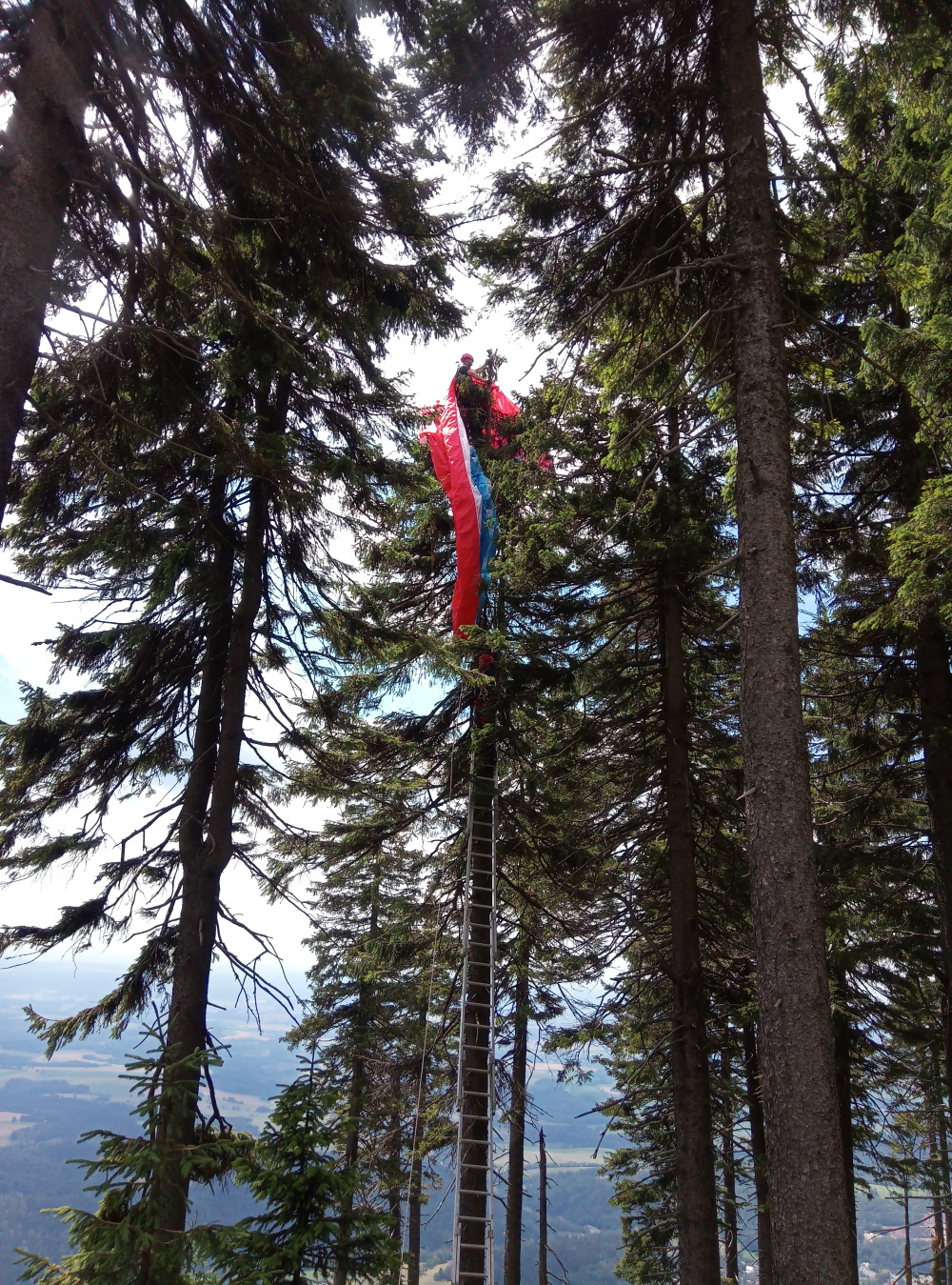 Během startovacího manévru zachytil paraglidistu poryv větru a zanesl ho rovnou do lesního porostu mezi stromy. Křídlo se zachytilo o špičky stromů, člověk pak zůstal viset ve výšce asi 12 metrů, nehoda byla ohlášena bez zranění. Na místě byli mezi hasiči také tři příslušníci se specializací hasič – lezec, kteří jsou kvalifikovaní pro práci ve výškách a nad volnou hloubkou. Aby se k paraglidistovi hasiči dostali, spojili dohromady několik žebříků, které také důkladně zajistili. Pomocí lanové techniky pak provedli lezci jištění shora, člověk se sám od padáku odpojil a jištěný se dostal po žebříku dolů. Hasiči poté vystoupali i pro samotný padák a sundali jej dolů. Zachráněná osoba byla v pořádku bez zranění, křídlo zůstalo také prakticky nepoškozeno. Zpět na své základny se jednotky vracely po 13. hodině. Na místě zasahovali profesionální hasiči z Trtunova a JSDH Hormí Maršov.