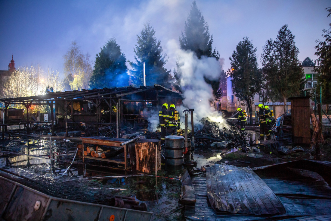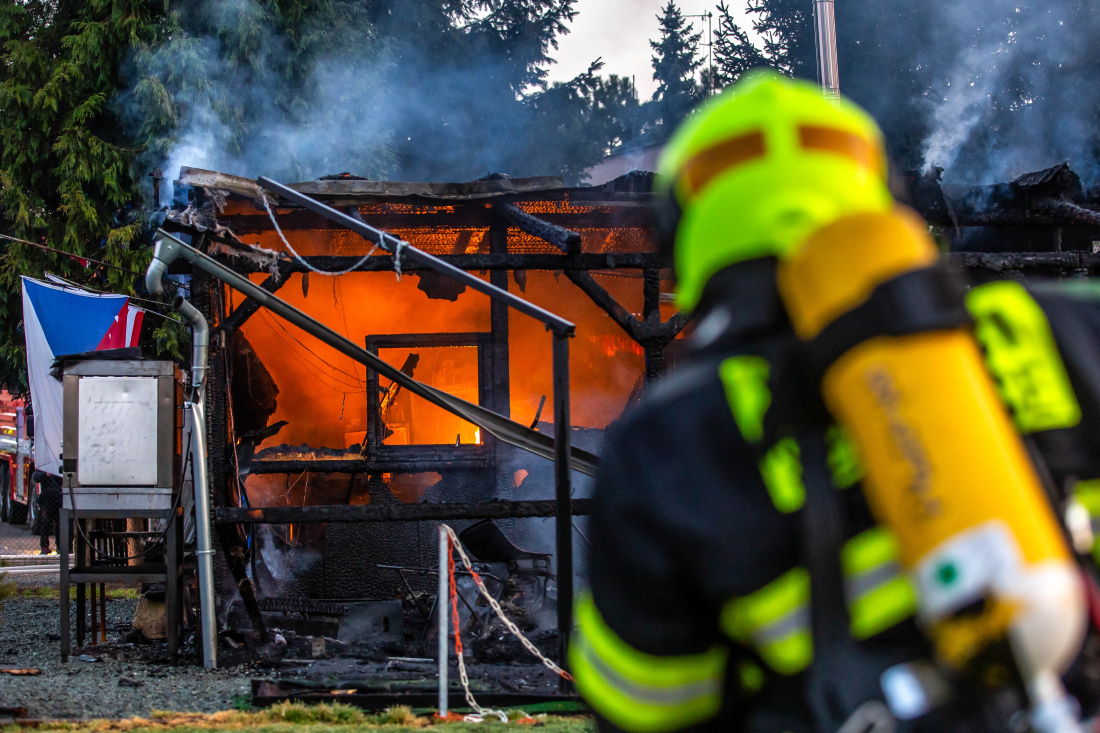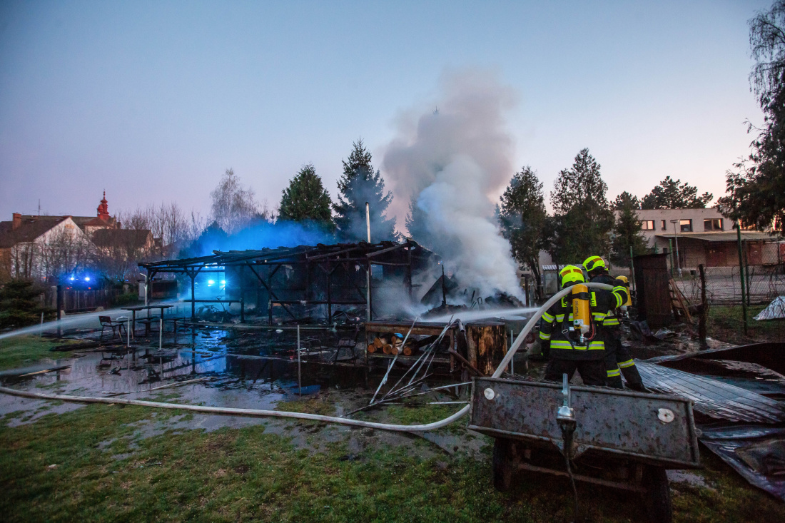 Plameny zničily dřevěnou restauraci v Jaroměři