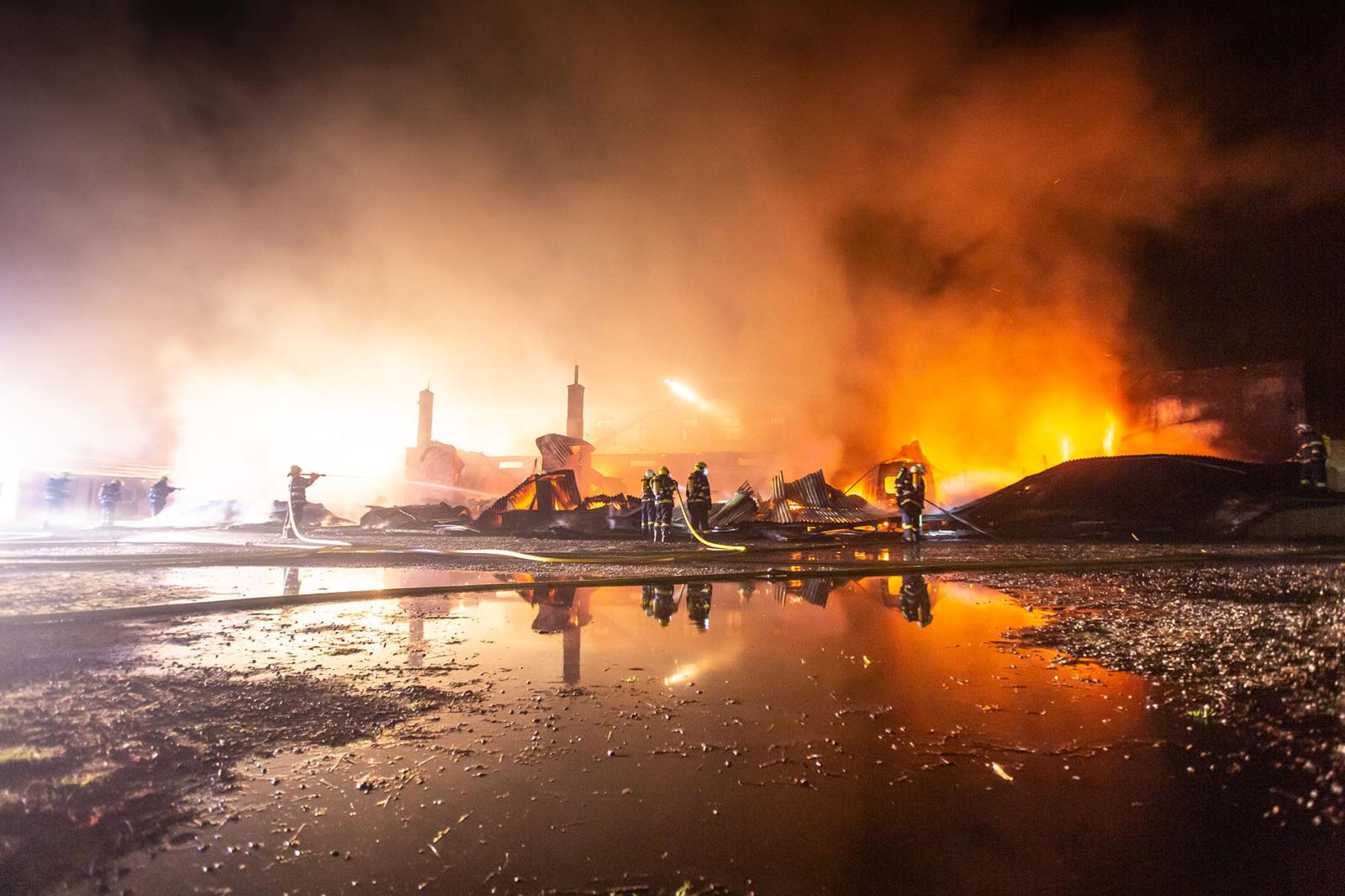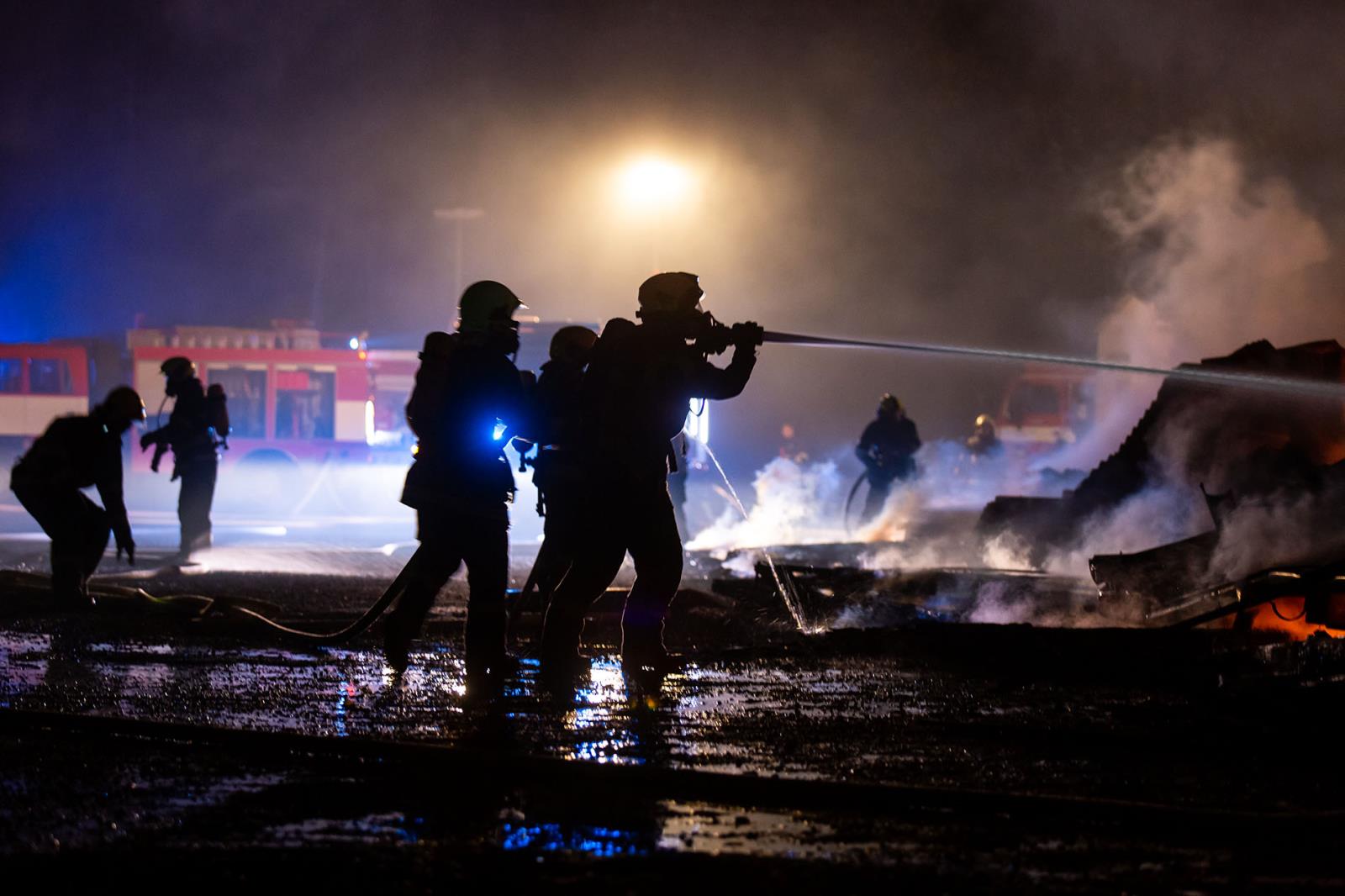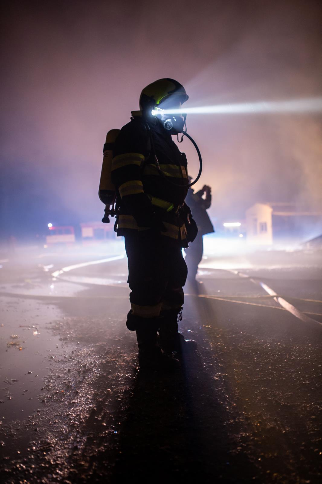 Průzkumem hasiči zjistili, že na místě hoří skladovací hala o rozměrech asi 30x15 m. Hala se nacházela na volném prostranství a plameny tak nic jiného v okolí neohrožovaly. Sklad byl již při příjezdu jednotek celý v plamenech a nebylo jasné, co za materiály se uvnitř nachází. Z toho důvodu prováděly jednotky hasební zásah zvenčí.