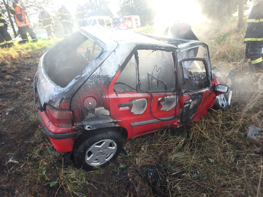 Po dopravní nehodě začalo vozidlo hořet