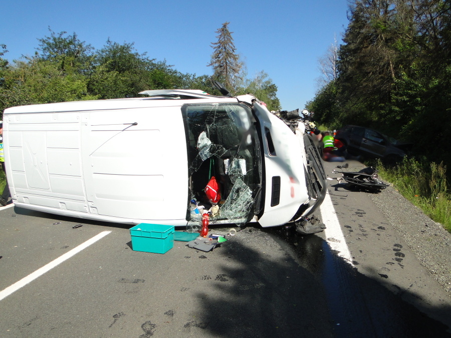 Po střetu osobního vozu a dodávky jedna osoba zemřela