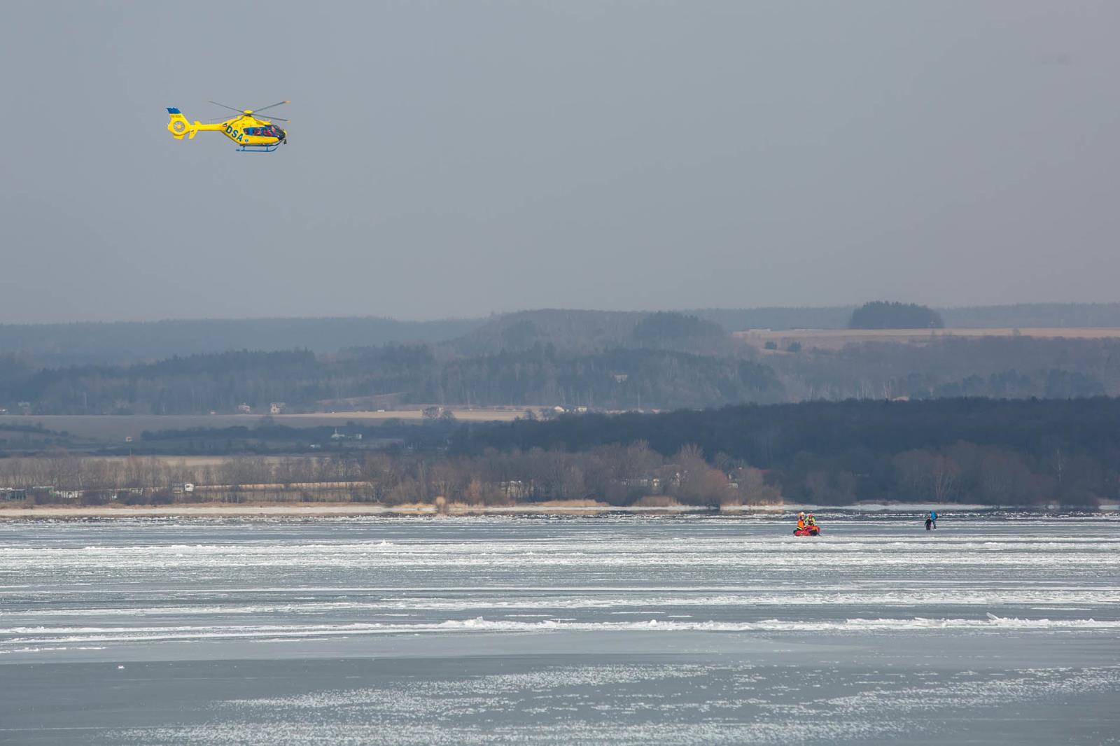 Bruslaři se nacházeli asi 1,5 kilometru od břehu, dostali se z vody zpět na led. Aby se zahřáli, kroužili na bruslích kolem, ale kvůli popraskanému ledu se báli vrátit zpět. Na pomoc jim vyrazila po ledě záchranná skupina čtyř hasičů se člunem a současně se na břehu připravoval ke vzletu vrtulník letecké záchranné služby. Obě osoby byly nakonec zachráněny právě pomocí záchranářského vrtulníku.