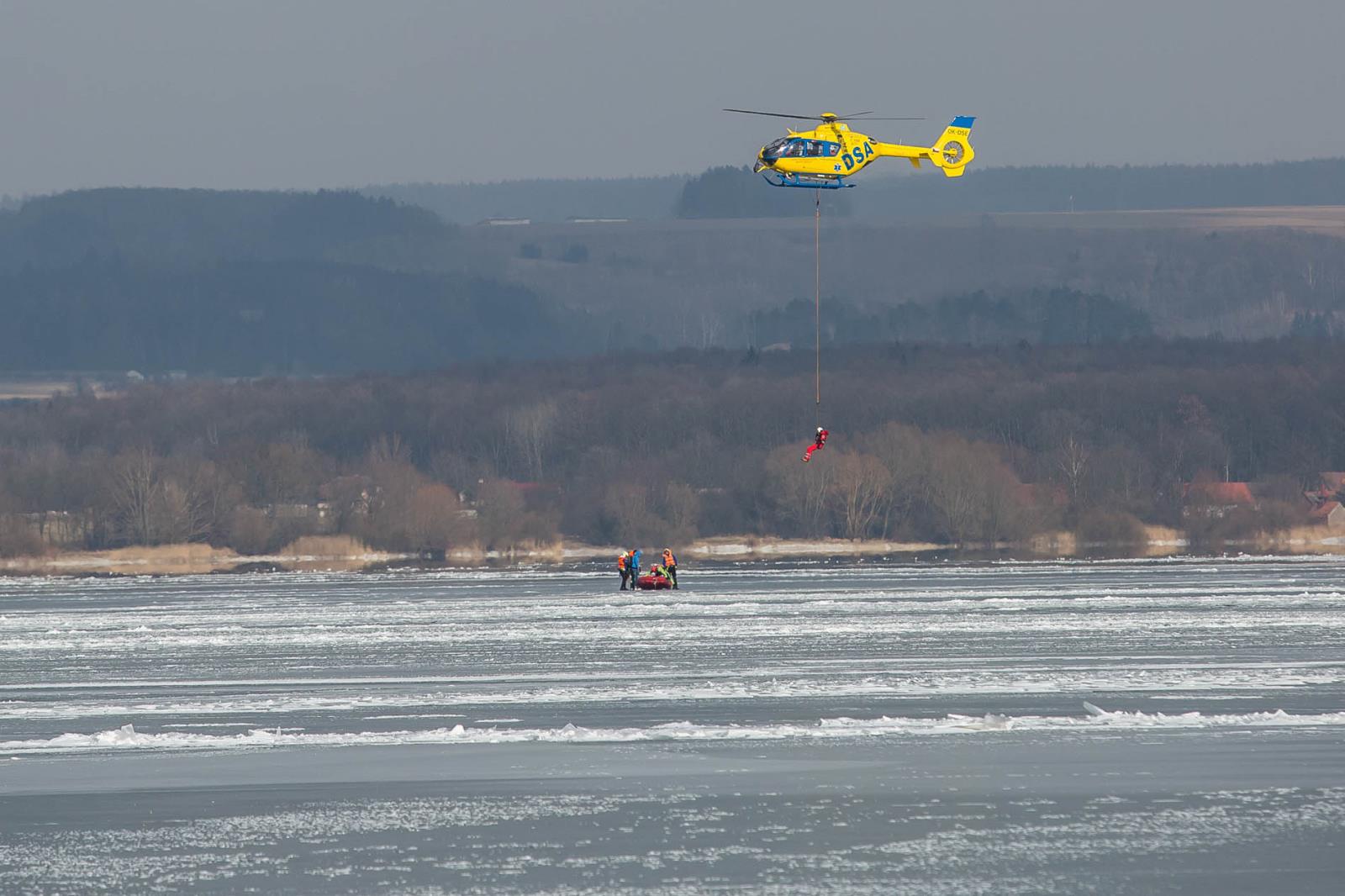 Vrtulník byl na Rozkoš odvolán z jiného zásahu. Po příletu se pokusil naložit oba bruslaře s dopomocí přímo na palubu vrtulníku, ale oba byli zesláblí natolik, že je vzdušný vír od vrtulníku odsouval po ledu pryč. Posádka tak změnila taktiku a připravila lanový podvěs, pomocí kterého byly obě osoby zachráněny. Muže jsme transportovali sanitkou do náchodské nemocnice a žena byla převezena vrtulníkem do hradecké fakultní nemocnice. Oba byli značně podchlazeni, ale bez dalších známek poranění. Nasazením vrtulníku byla celá záchranná akce zkrácena o desítky minut. To bylo vzhledem ke stádiu hypotermie, ve kterém se oba bruslaři nacházeli, zcela zásadní, “ řekl mluvčí Zdravotnické záchranné služby Královéhradeckého kraje Ivo Novák.