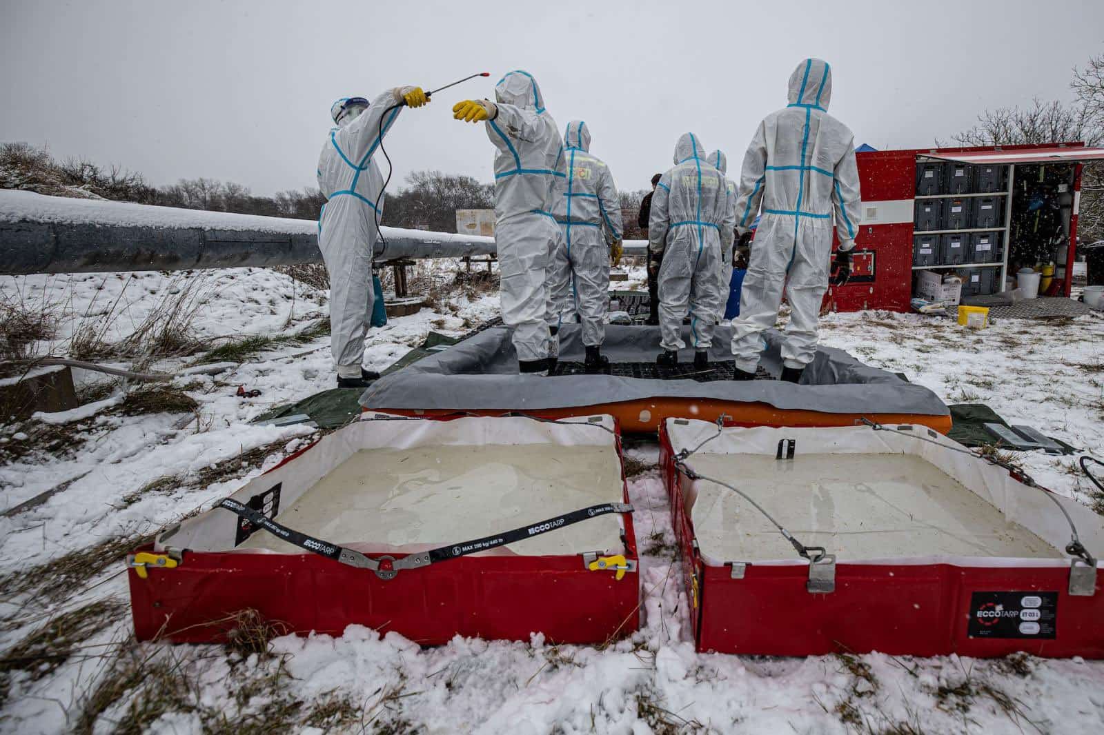 Na místě zasahuje přibližně padesát profesionálních hasičů. Jednotky zajišťují dekontaminaci osob i techniky a provádějí dezinfekci hal. Cílem opatření je zabránit dalšímu šíření nákazy a zajistit bezpečné prostředí pro všechny zasahující složky.