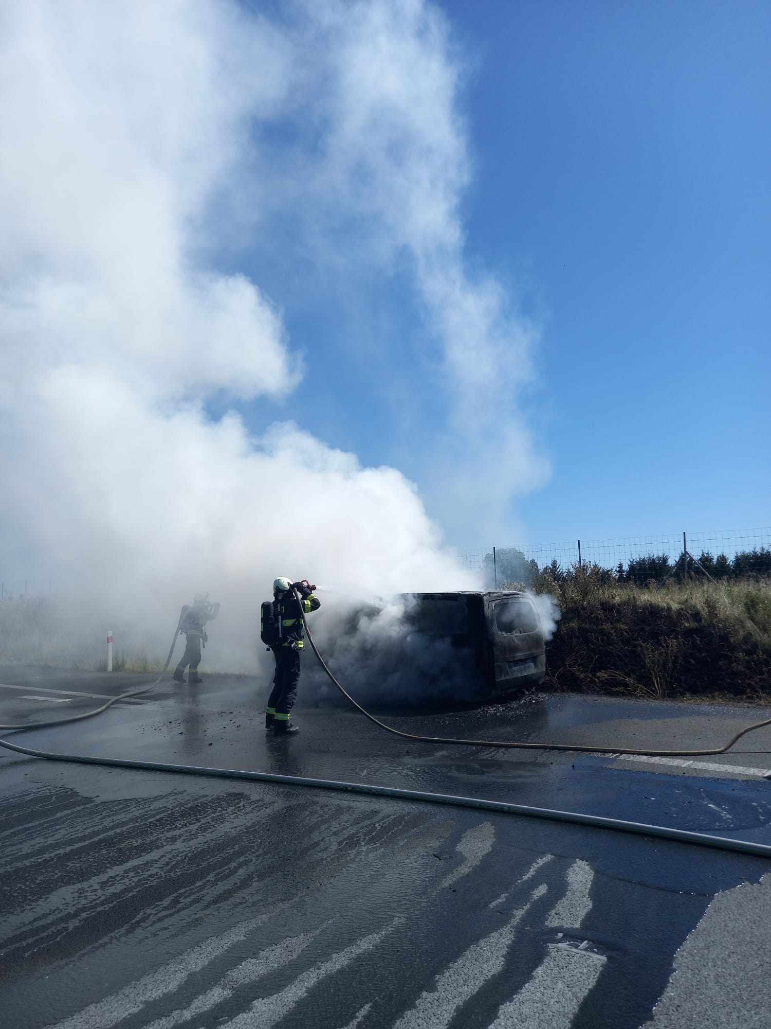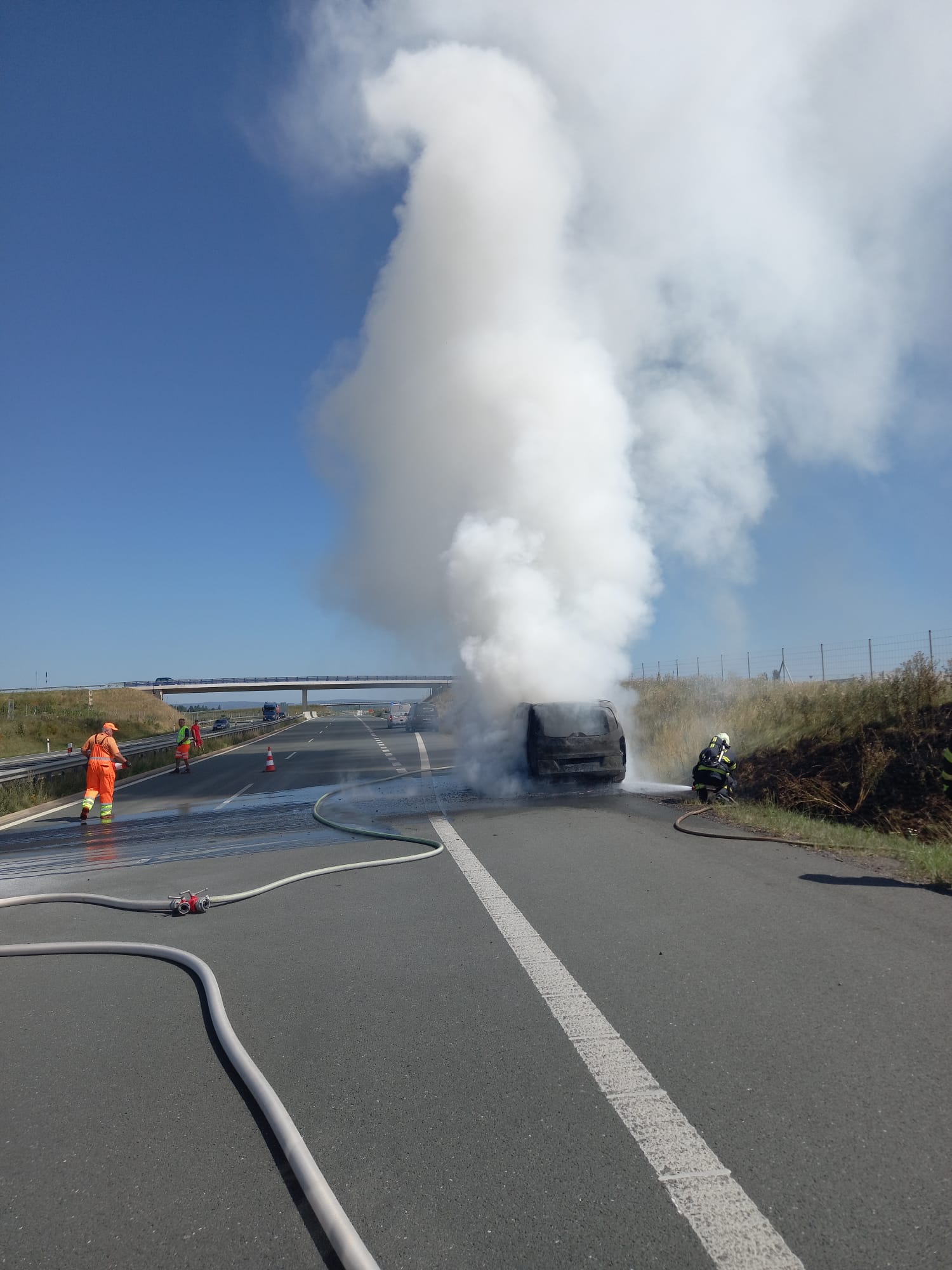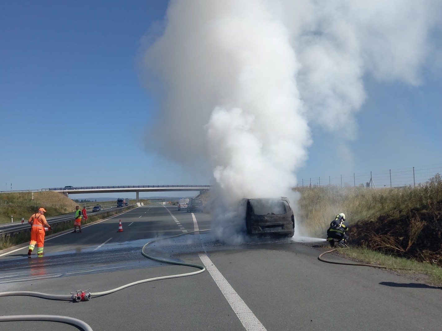 V úterý 12. srpna krátce po 11. hodině dopolední zasáhla dálnici D11 dramatická událost. Na 104. kilometru ve směru na Jaroměř, nedaleko obce Holohlavy, začal hořet osobní automobil. Svědci okamžitě volali na tísňovou linku a během příjezdu hasičů už z místa stoupal hustý černý kouř, viditelný na kilometry daleko.