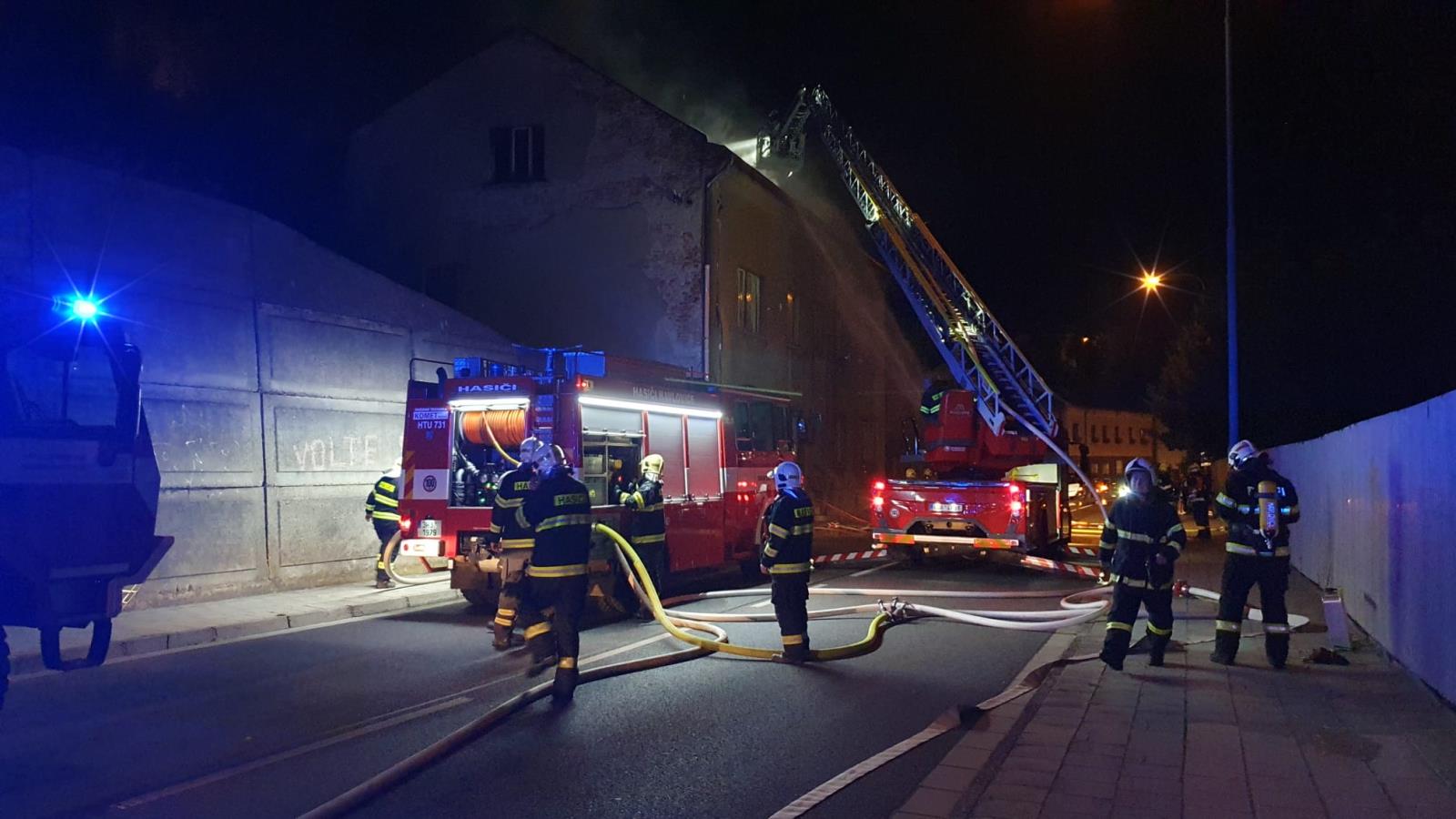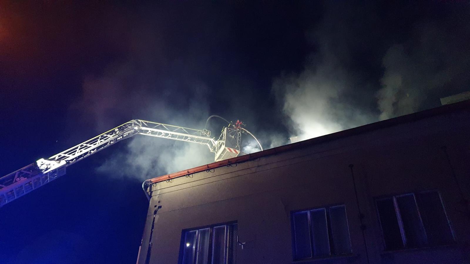 Hodinu před půlnocí přijalo krajské operační a informační středisko HZS hlášení o požáru v bytovém domě v ulici Palackého. Na místo události byly vyslány 4 jednotky požární ochrany, které průzkumem zjistily, že hoří v půdních prostorech domu. Všichni obyvatelé stihli budovu opustit ještě před příjezdem jednotek na místo události. Hasiči provedli průzkum všech bytů, nikdo se už uvnitř nenacházel.