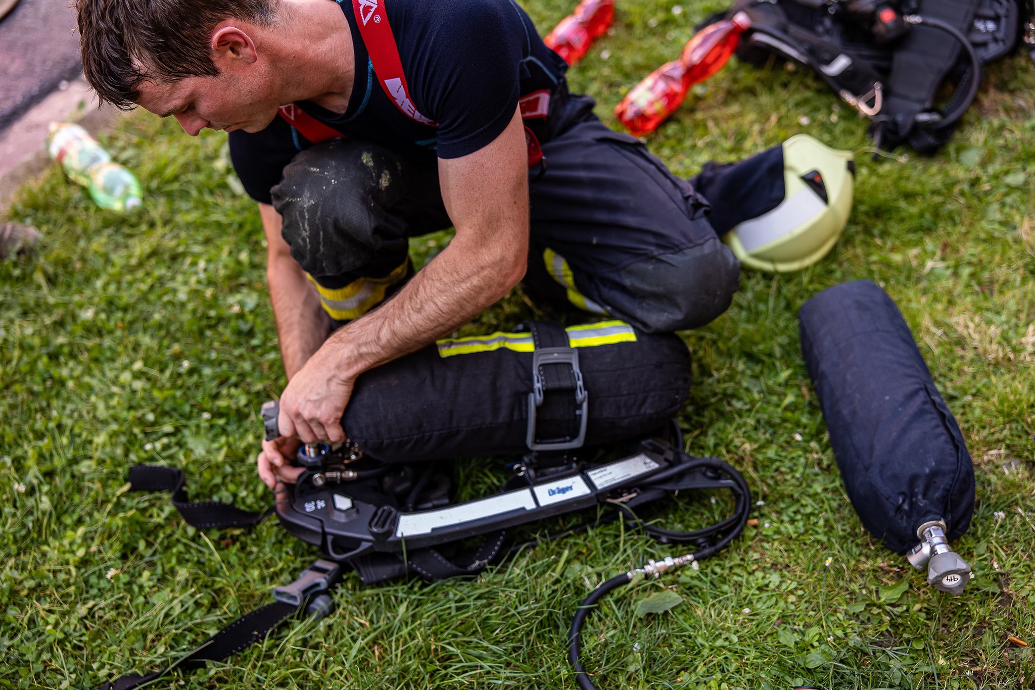 Po svém příjezdu provedly jednotky rychlý průzkum a zjistily požár uvnitř jedné z bytových jednotek. V bytě se předtím nacházely tři osoby, všechny byly zraněné. Dvě z nich byly už při příjezdu jednotek venku mimo objekt, třetí zraněné osobě museli hasiči pomoci ven oknem. Všichni ranění byli v péči posádek zdravotnické záchranné služby, která vyslala na místo také dva vrtulníky letecké záchranné služby. Jeden z pacientů na místě svým zraněním podlehl, další dva lidé byli letecky transportováni do zdravotnického zařízení.