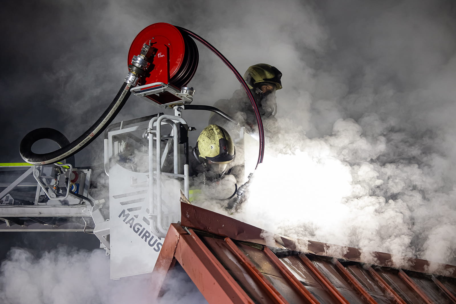Jednotky prováděly hasební práce zvenčí i zevnitř objektu. Půda byla zcela zasažena plameny. Hasiči vytvářeli ve střešní konstrukci otvory, aby snížili intenzitu hoření a dostali se k ohniskům požáru. Využili také výškovou techniku.