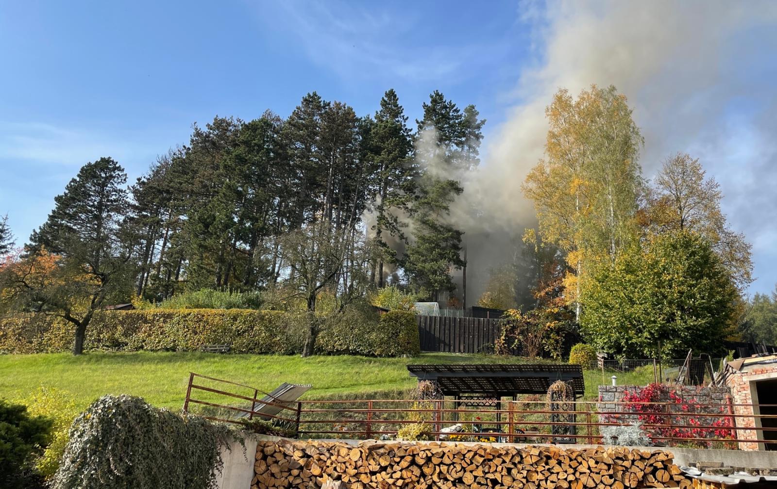 Požár chaty v Bělovsi v Náchodě
