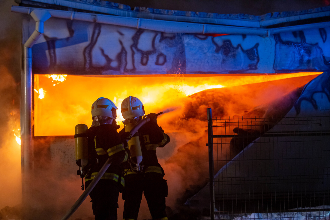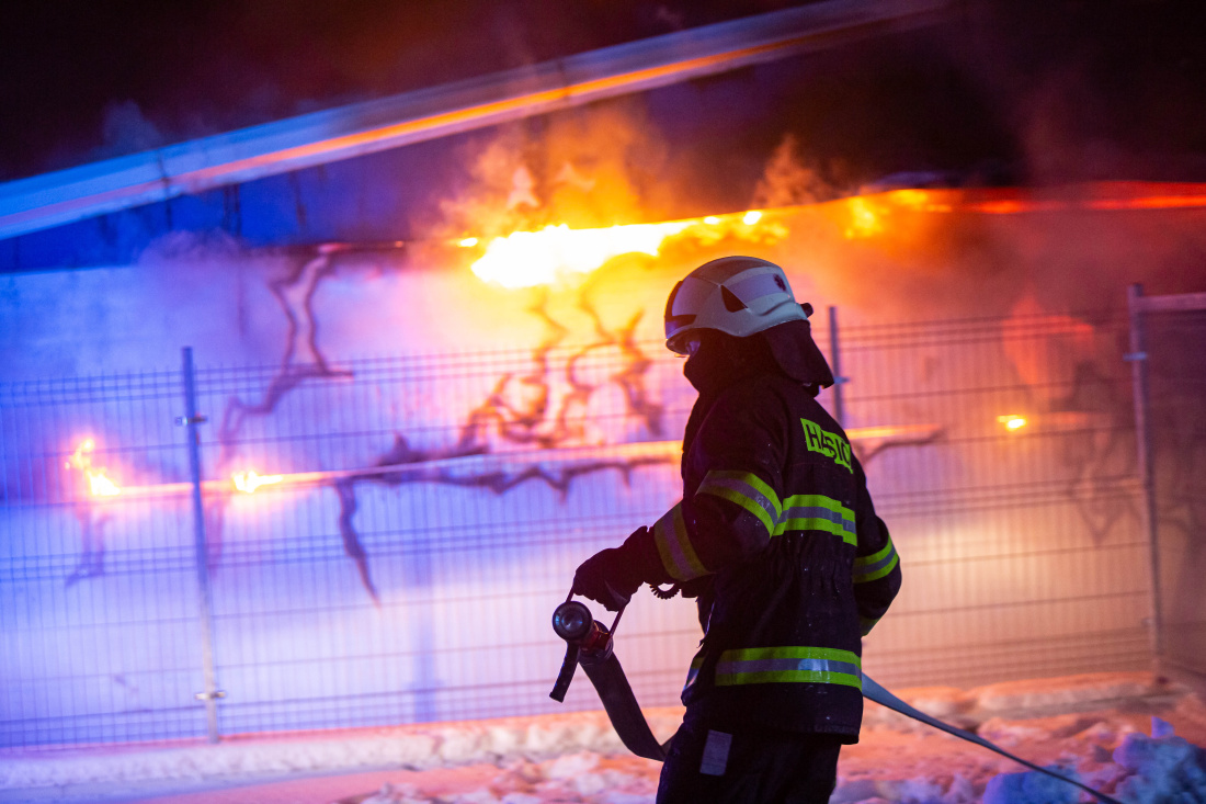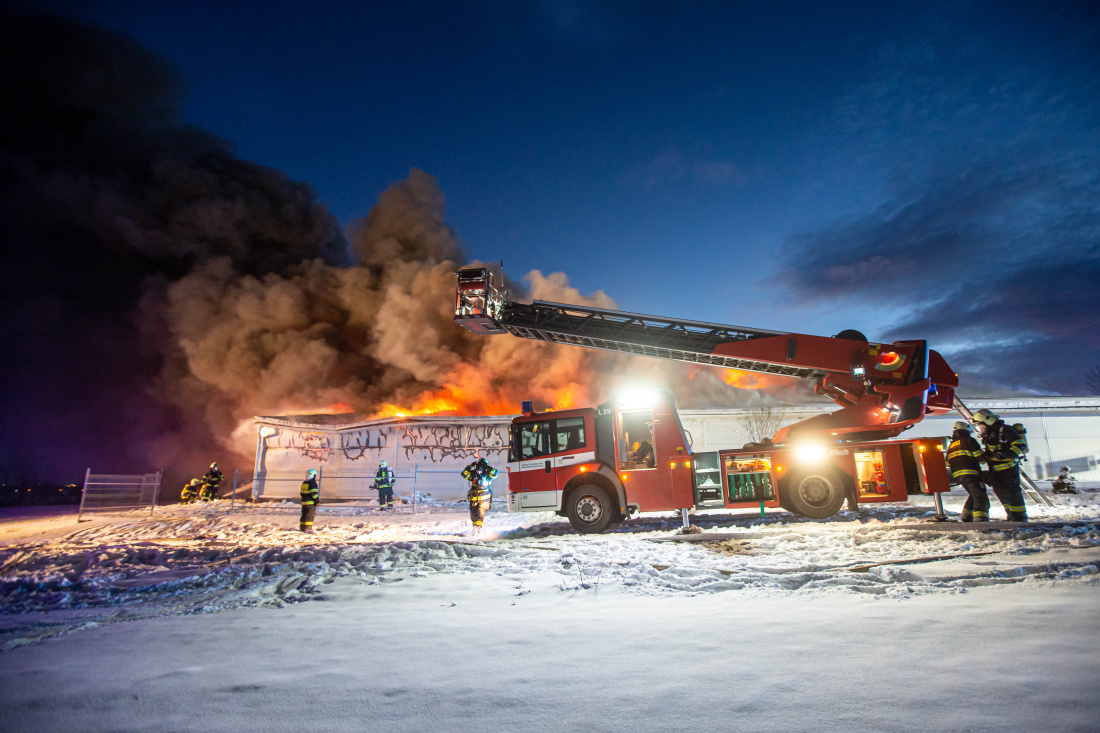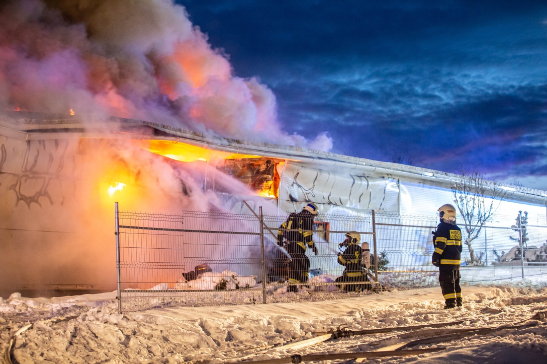 Požár haly, Sendražice, 14.1.2021