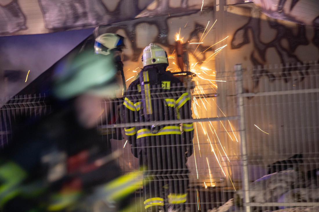 Jednotkám se podařilo požár lokalizovat v 20:24 hod. Následně probíhalo odhalování a dohašování ohnisek uvnitř haly. Pomocí výškové techniky prořezávali hasiči střechu, zda nejsou skrytá ohniska v její konstrukci. Následně se podařilo hasičům dostat dovnitř budovy, aby vynesli dvě tlakové lahve, které byly uvnitř pořád příliš nebezpečné. Lahve ze svářecí soupravy nakonec zchladili. Pohyb v hale, která byla částečně zborcená, byl i nadále pro hasiče rizikový, proto další dohašování probíhalo výhradně z vnějšku budovy. Likvidaci požáru ohlásil velitel zásahu v 22:08 hod., dohled nad požářištěm drží až do dopoledních hodin místní dobrovolná jednotka ze Sendražic.