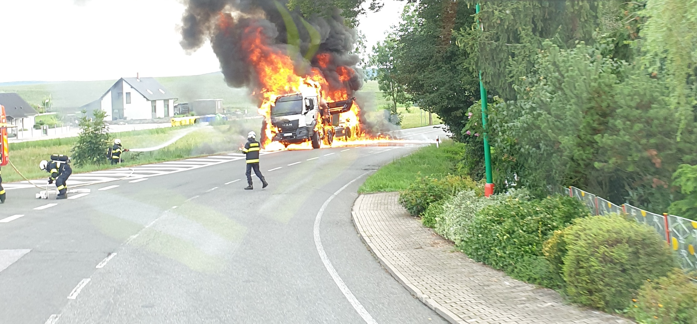 Na silnici č. I/32 v obci Jičíněves zasahovaly jednotky u požáru kamionu v plném rozsahu Škoda byla vyčíslena na 10 mil. Kč.