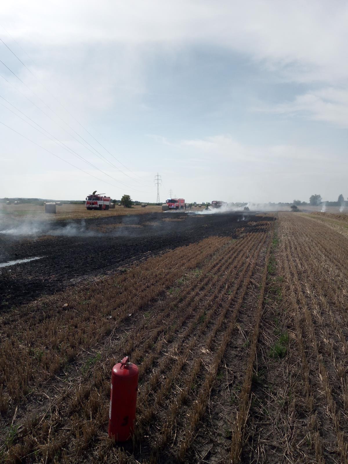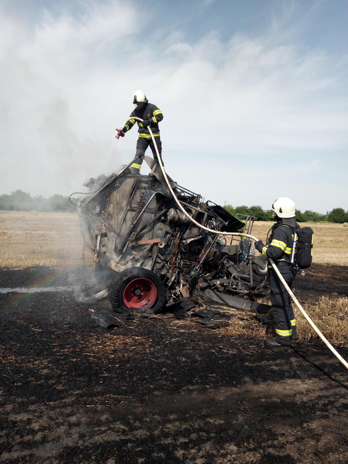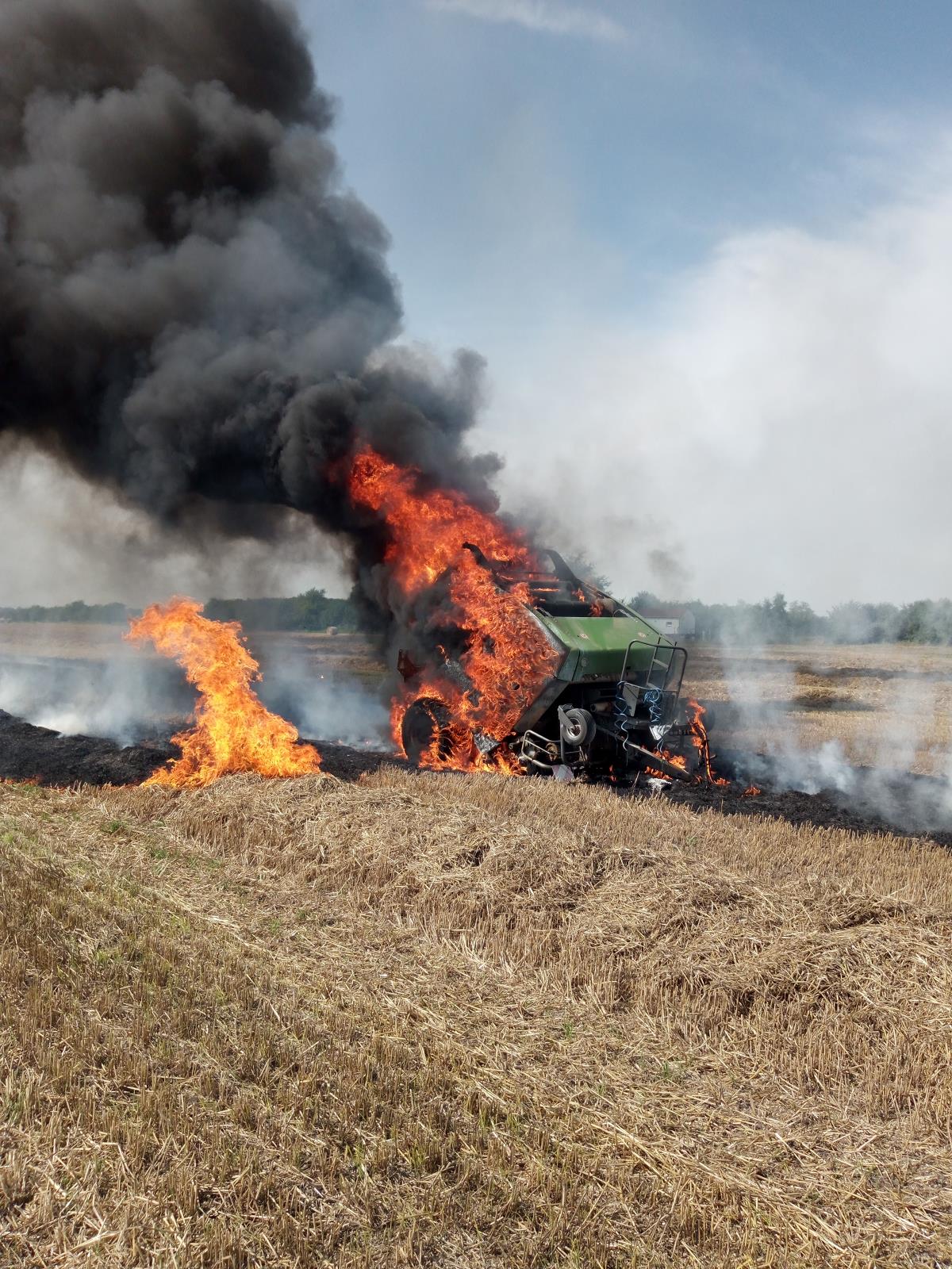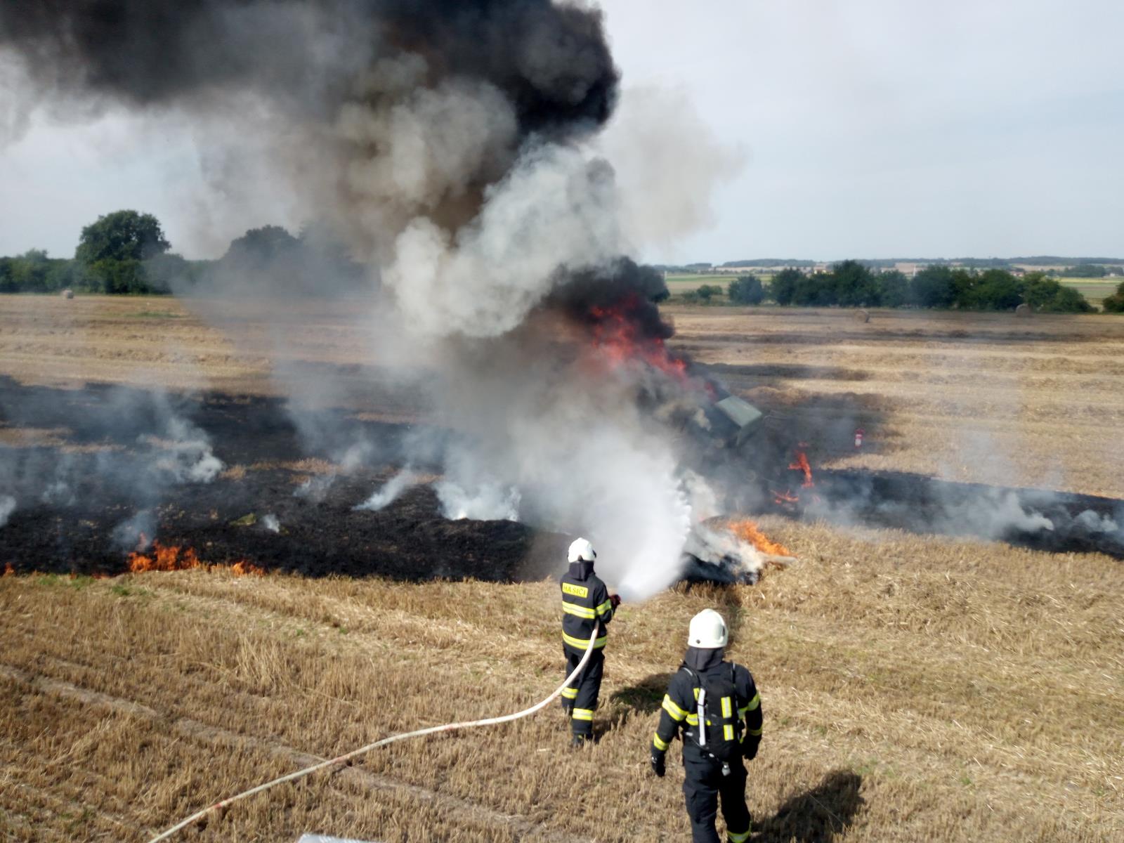 Škoda po požáru lisu na poli byla vyčíslena na 1,5 mil. Kč...