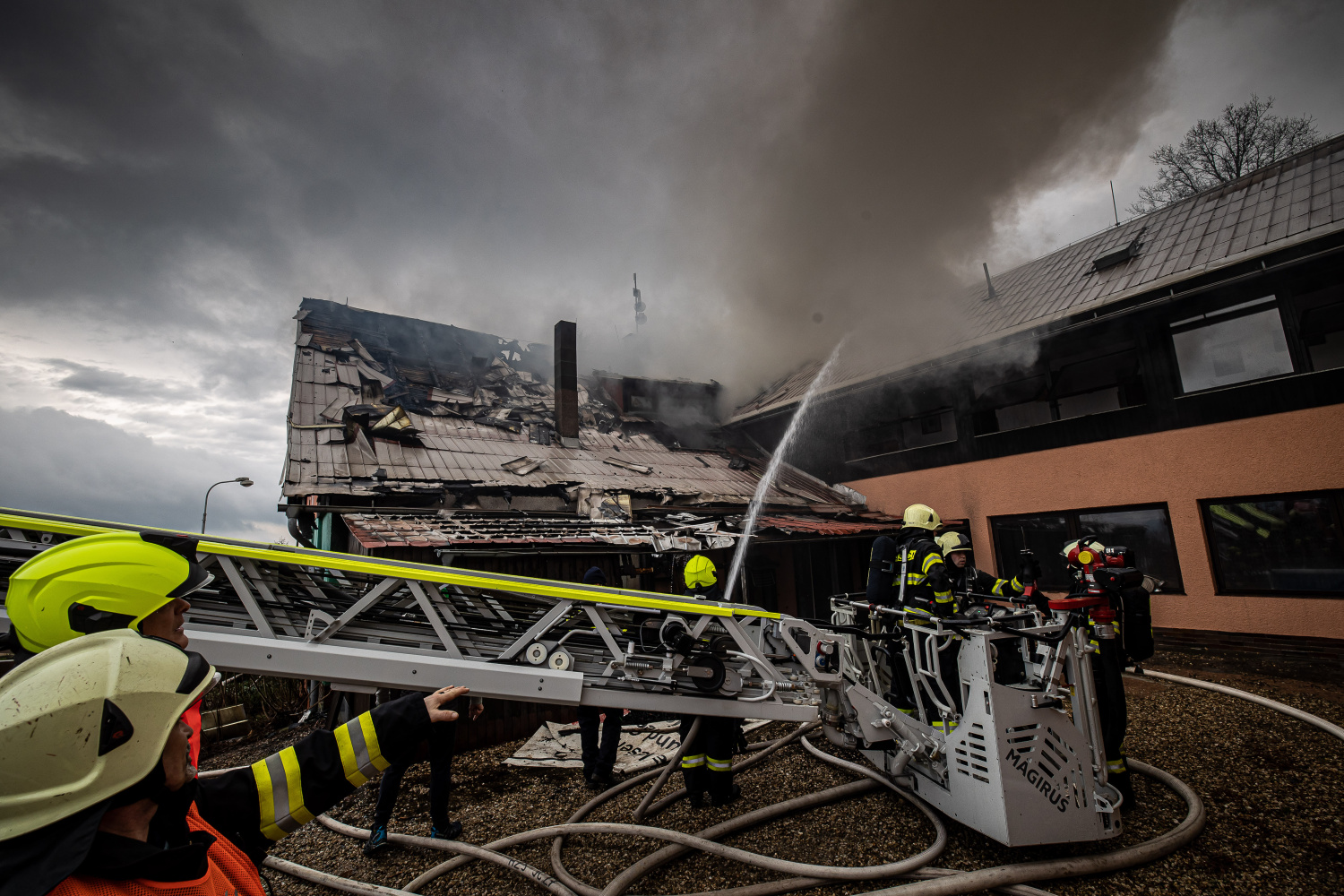 Lokalizaci požáru ohlásil velitel zásahu v 12:20 hod. Během odpoledních hodin byly síly a prostředky na místě redukovány, některé jednotky byly odesílány zpět na základny. Dále se provádí likvidační práce při rozkrývání konstrukce a dohašování případných skrytých ohnisek.