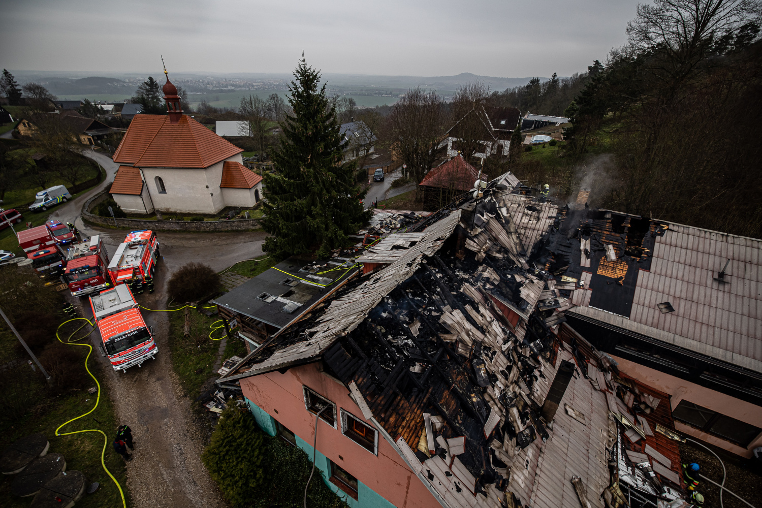 Penzion v části obce Brada zasáhl ve čtvrtek ráno po 8. hodině požár, který se šířil zejména po střeše a v mezistropí objektu mezi střešní konstrukcí a podhledy. Na místo byly postupně vyslány jednotky z 3. stupně požárního poplachu, o mezikrajskou výpomoc byl požádán i sousední Liberecký kraj.