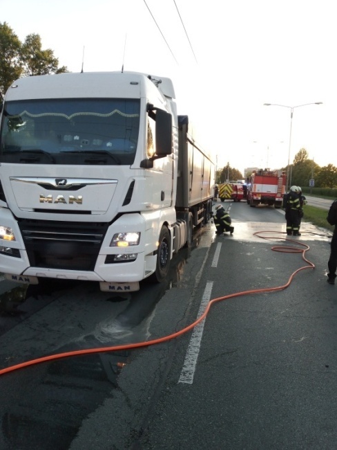 K ohlášenému požáru kamionu, který zastavil na městském okruhu u křižovatky s ulicí Hradecká, vyjela z blízké centrální stanice Hradec Králové profesionální jednotka hasičů. Hasiči zjistili, že kamionu bouchla pneumatika, požár se tak šířil odtud. Prvotní zásah provedl řidič kamionu, jednotka následně místo dohasila. Příčinou vzniku požáru byla technická závada, škoda byla vyčíslena asi na 100 tisíc korun. Uchráněné hodnoty představují asi dva miliony korun.
