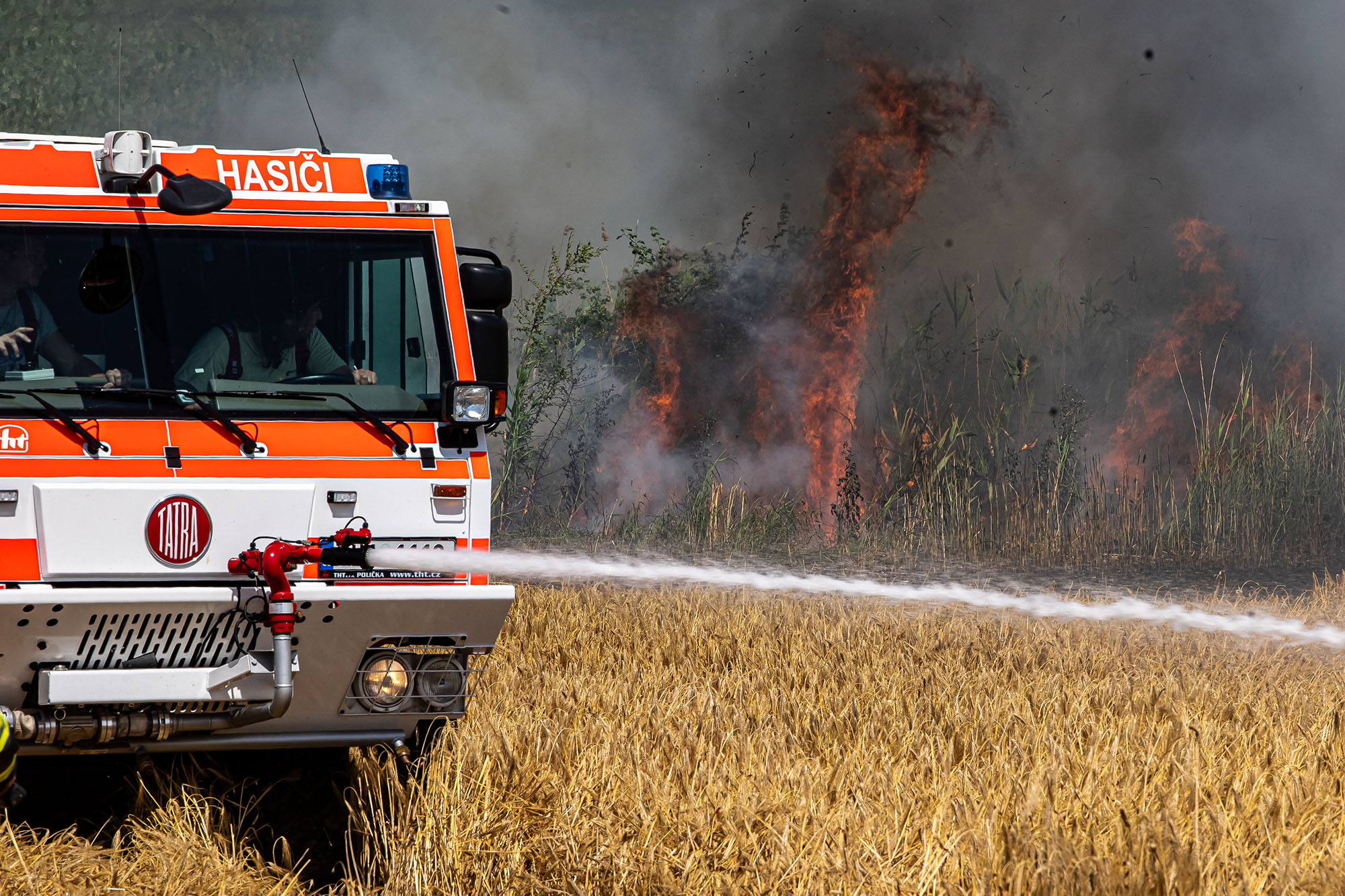 Požár pole si vyžádal nasazení jednotek z 2. stupně požárního poplachu