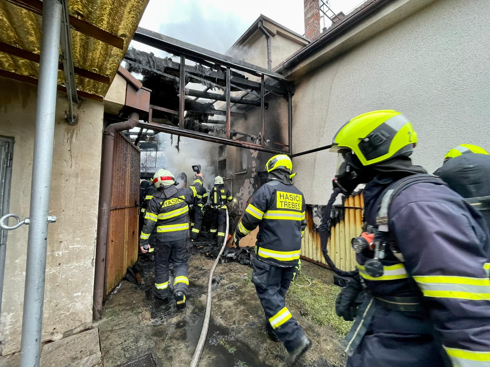 Hned několik oznámení o požáru mezi rodinnými domy v ulici Štefcova v královéhradecké části Malšovice se sešlo na tísňovou linku ve středu po 14. hodině. Na místo vyslal operační důstojník jednotky z prvního stupně požárního poplachu. Průzkumem místa zásahu bylo zjištěno, že hoří v prostoru přístřešku na dřevo mezi rodinným domem a zděnou kůlnou, uvnitř objektu se nikdo nenacházel.