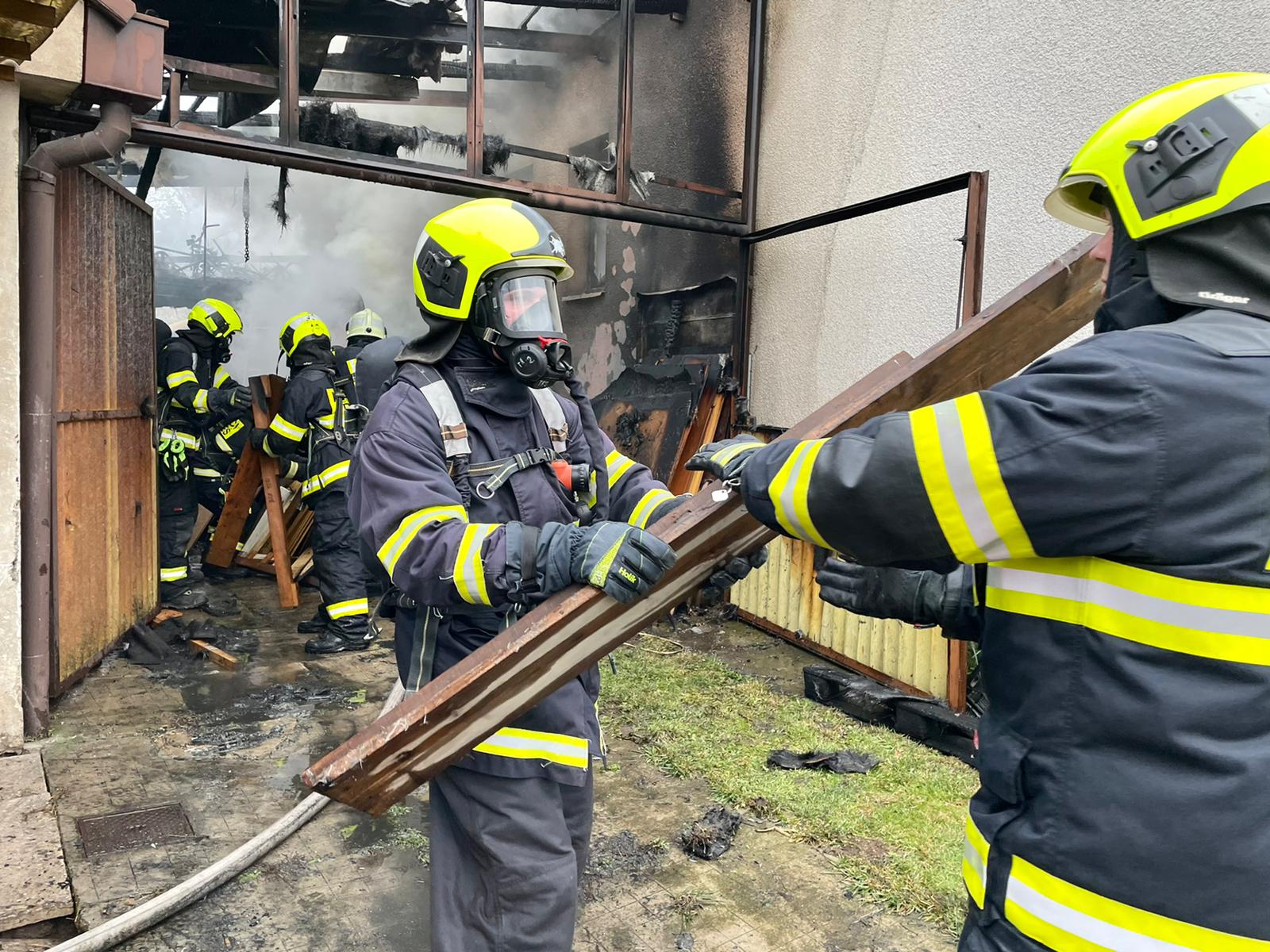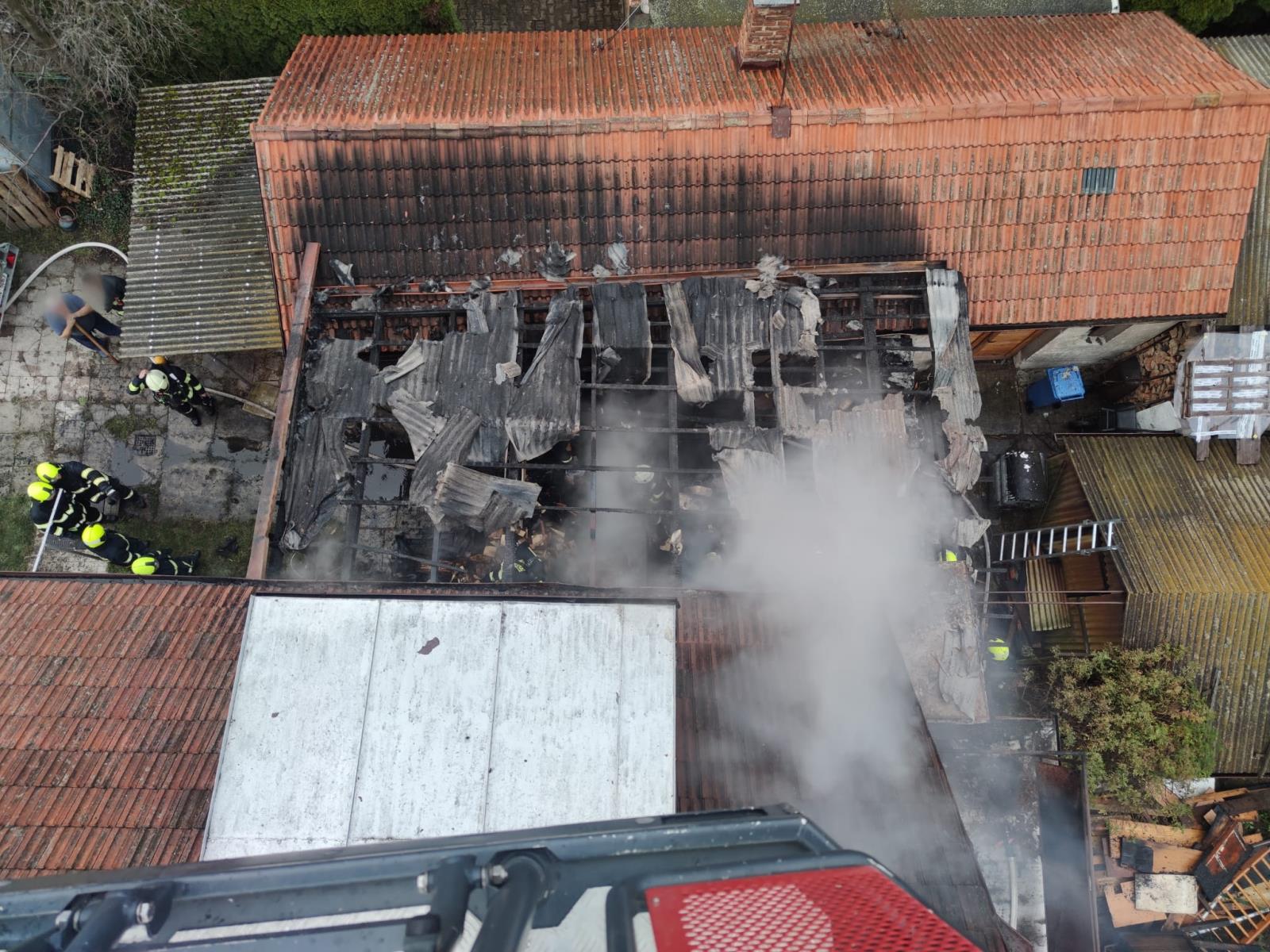 Na likvidaci požáru nasadili hasiči dva vodní proudy. Zároveň po celou dobu kontrolovali objekt zevnitř i zvenčí za pomoci termokamery, aby si ověřili, že se požár nešíří skrytě do obytných prostor. Ty se nakonec podařilo před plameny uchránit. Do půl hodiny od nahlášení události byl požár lokalizován a jednotky dál pracovaly na vyklízení materiálu z přístřešku, jeho dohašování a rozebíraly zasaženou konstrukci. Po 16. hodině bylo místo zásahu předáno majiteli s nařízenou dohlídkou.