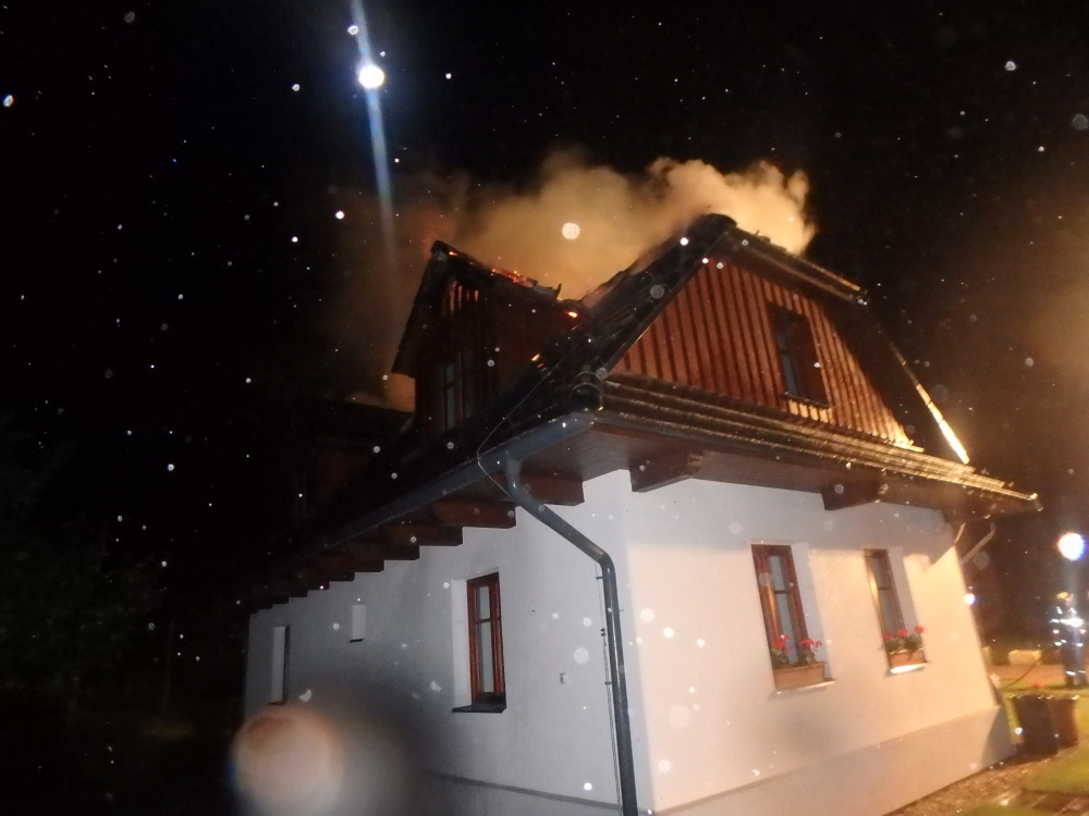 Pět jednotek hasičů bylo zalarmováno kvůli nahlášenému požáru rodinného domu v Olešnici na Hradecku. Průzkumem hasiči zjistili, že se jedná o roubenku a požárem je zasažena téměř celá střecha. Těsně po čtvrté hodině ranní dostaly jednotky požár pod kontrolu a následně dohašovaly ohniska. Kolem 05:30 hod. bylo po prohlídce termokamerou místo události předáno majitelům.