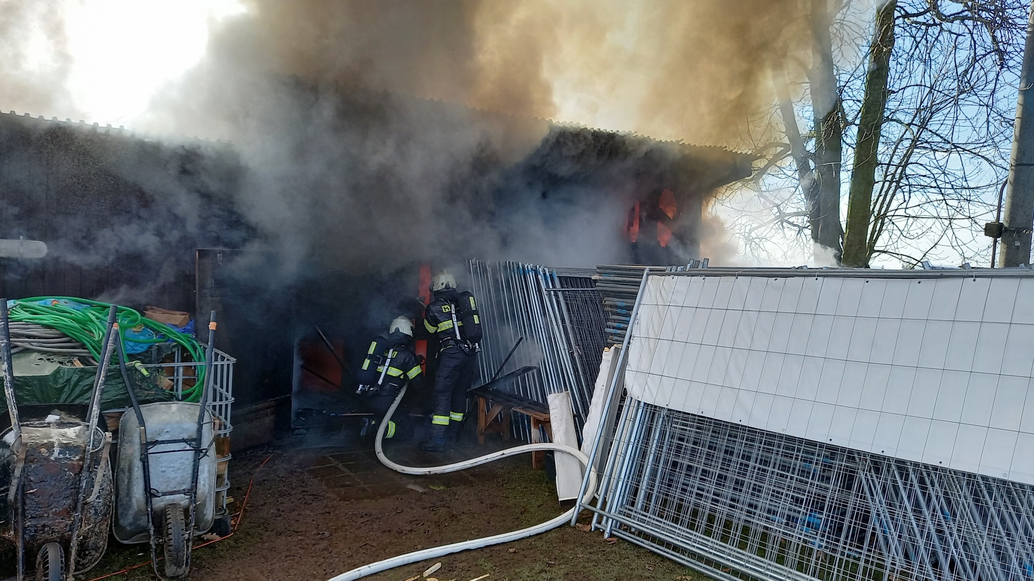 Díky rychlé reakci se hasičům podařilo zabránit rozšíření ohně na okolní skladovaný materiál. Během zásahu navíc vynesli z hořící budovy dvě propanbutanové lahve, čímž předešli možné explozi. Hasiči dopravovali vodu kyvadlově cisternami, zatímco bojovali s plameny.