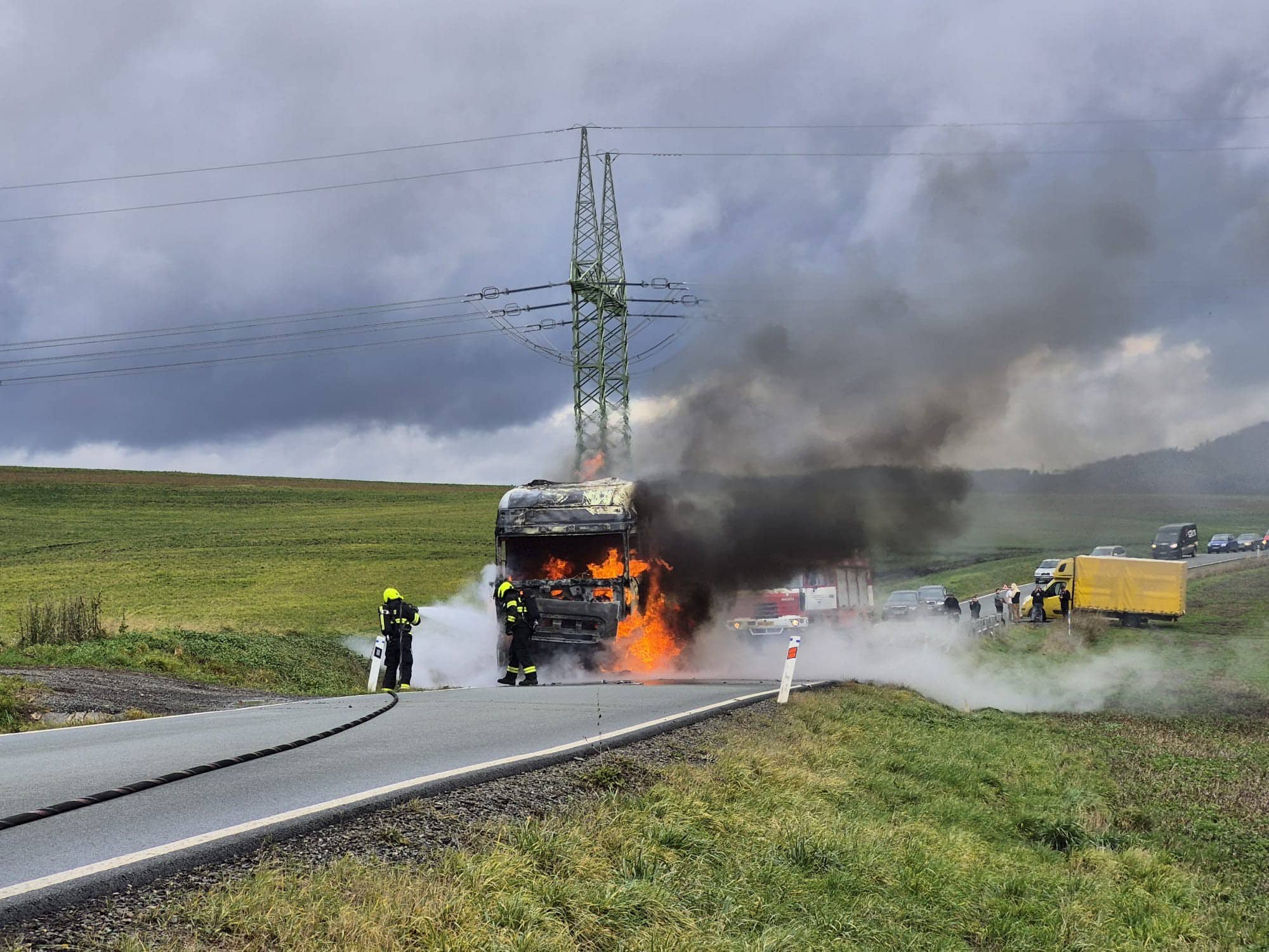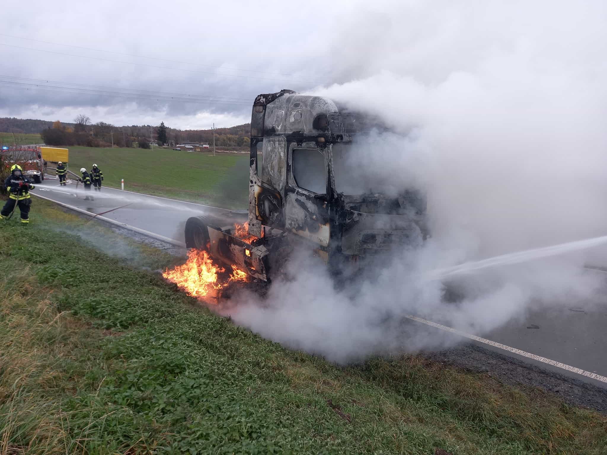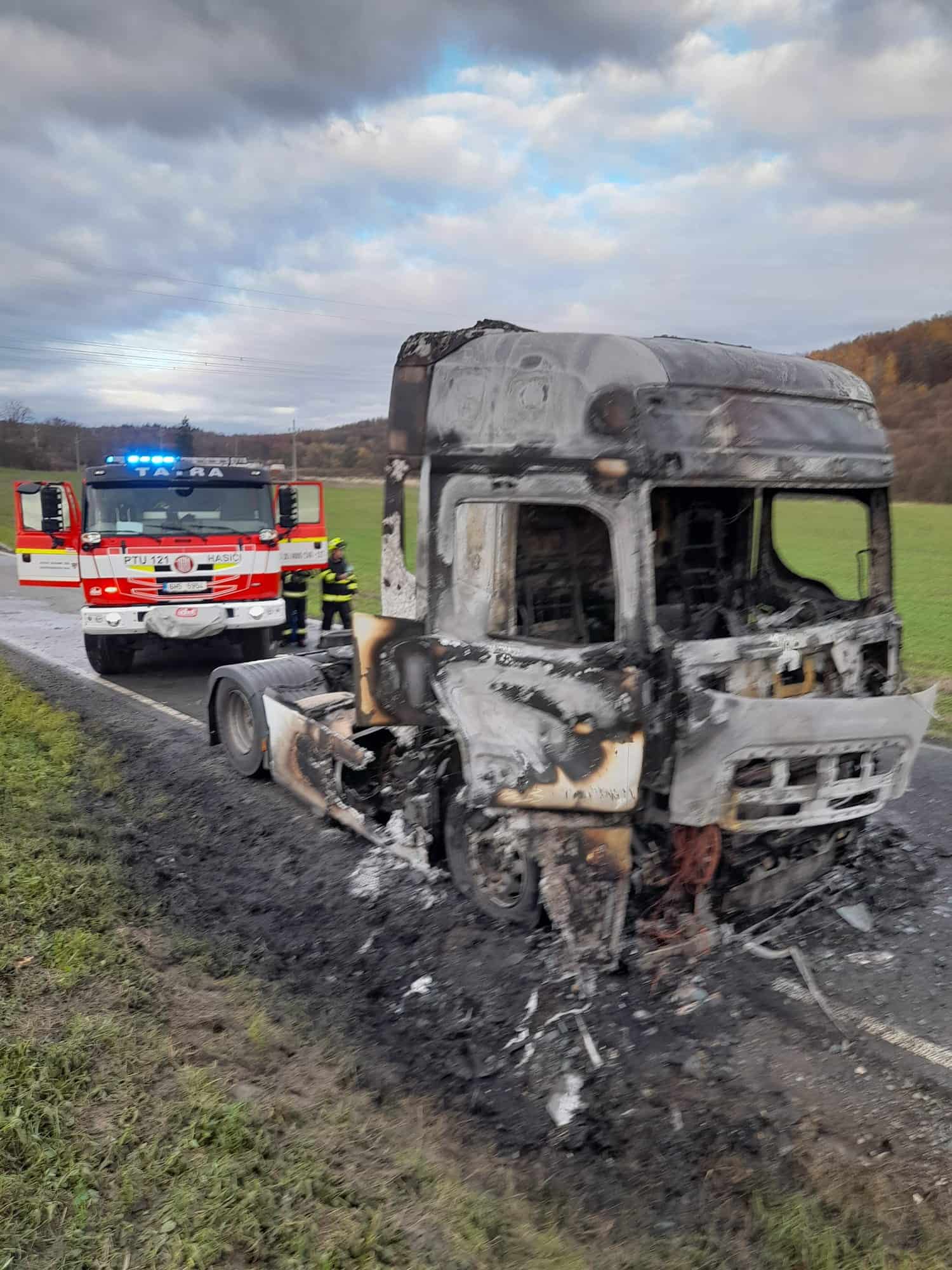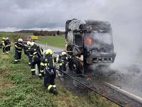 Požár tahače zastavil provoz, rychlý zásah zabránil větším škodám